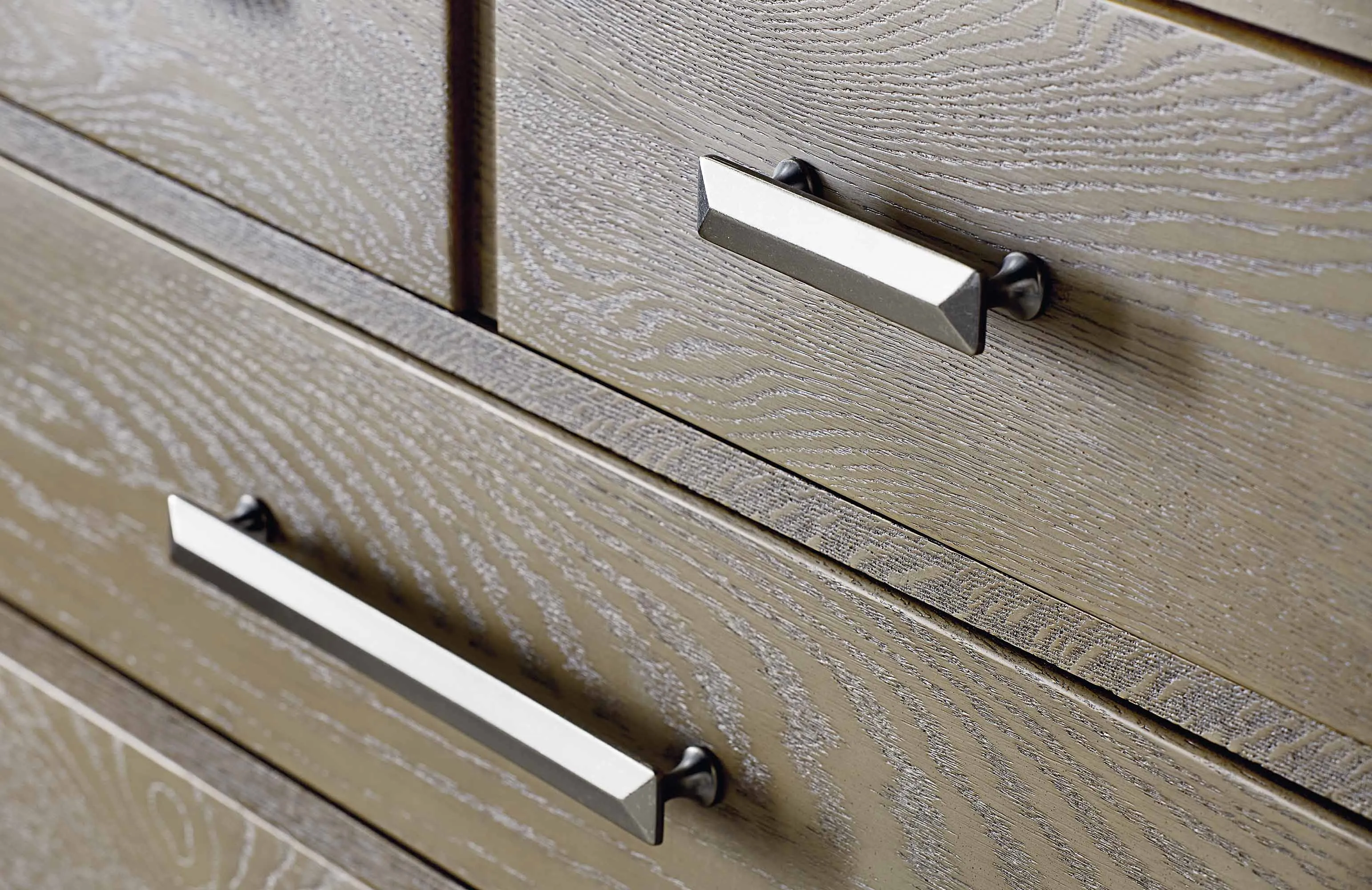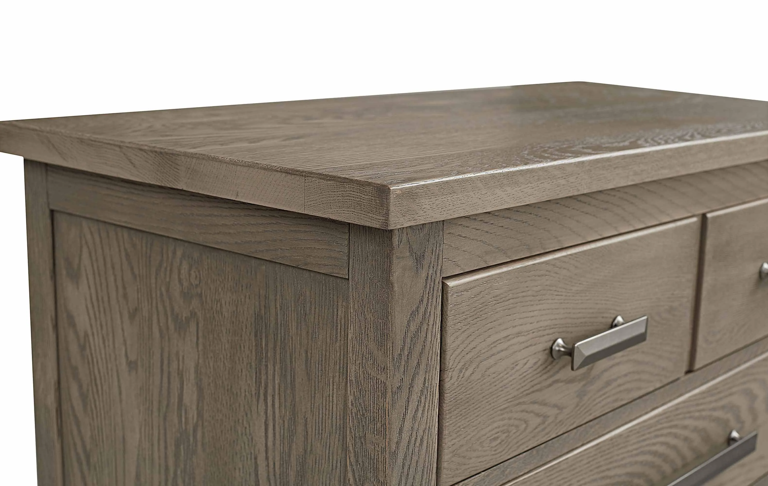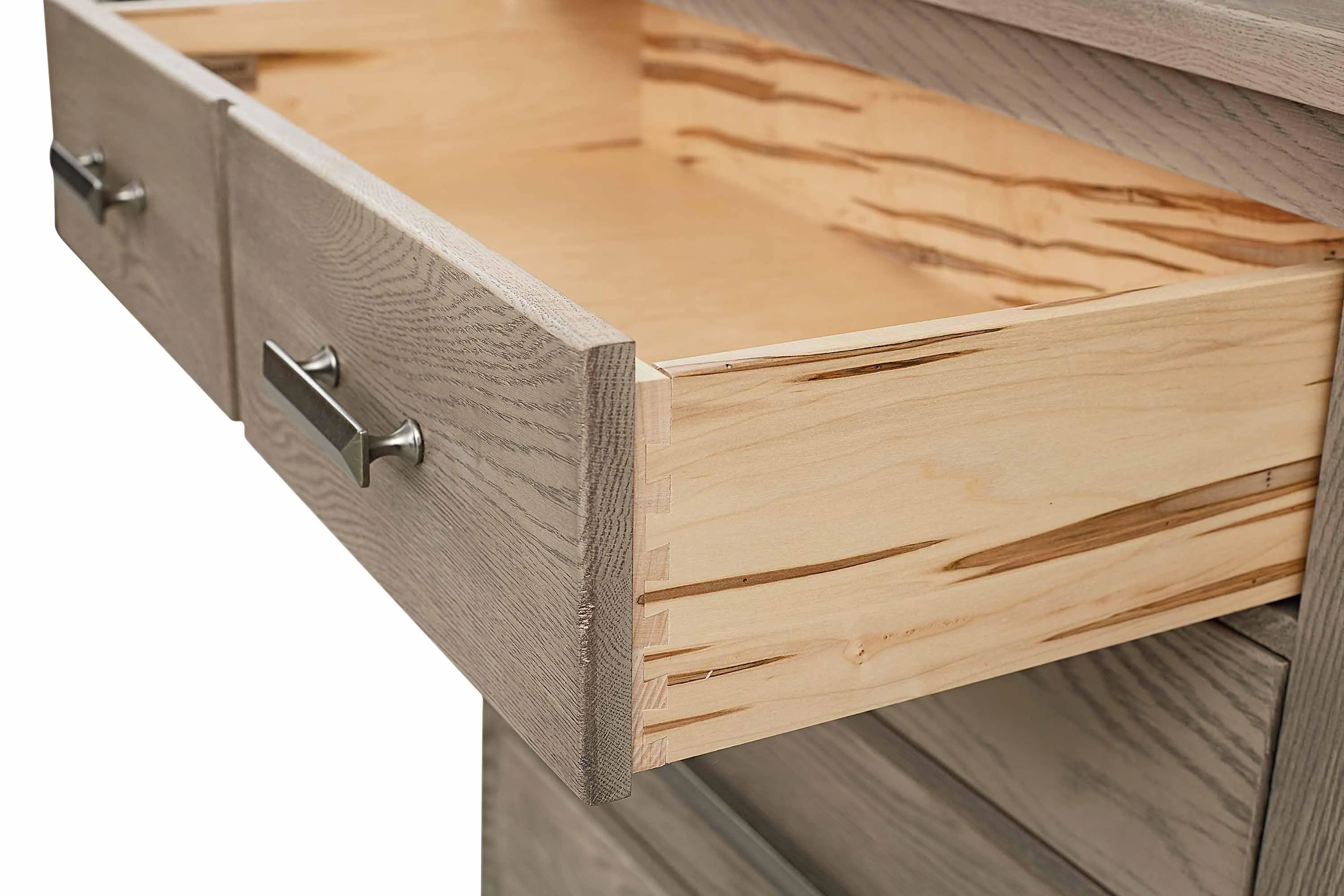 Constructed of solid Appalachian white oak for beauty and strength with drawer boxes constructed of Appalachian red leaf maple. Abingdon also features soft close drawer guides. Shown in storm grey oak.