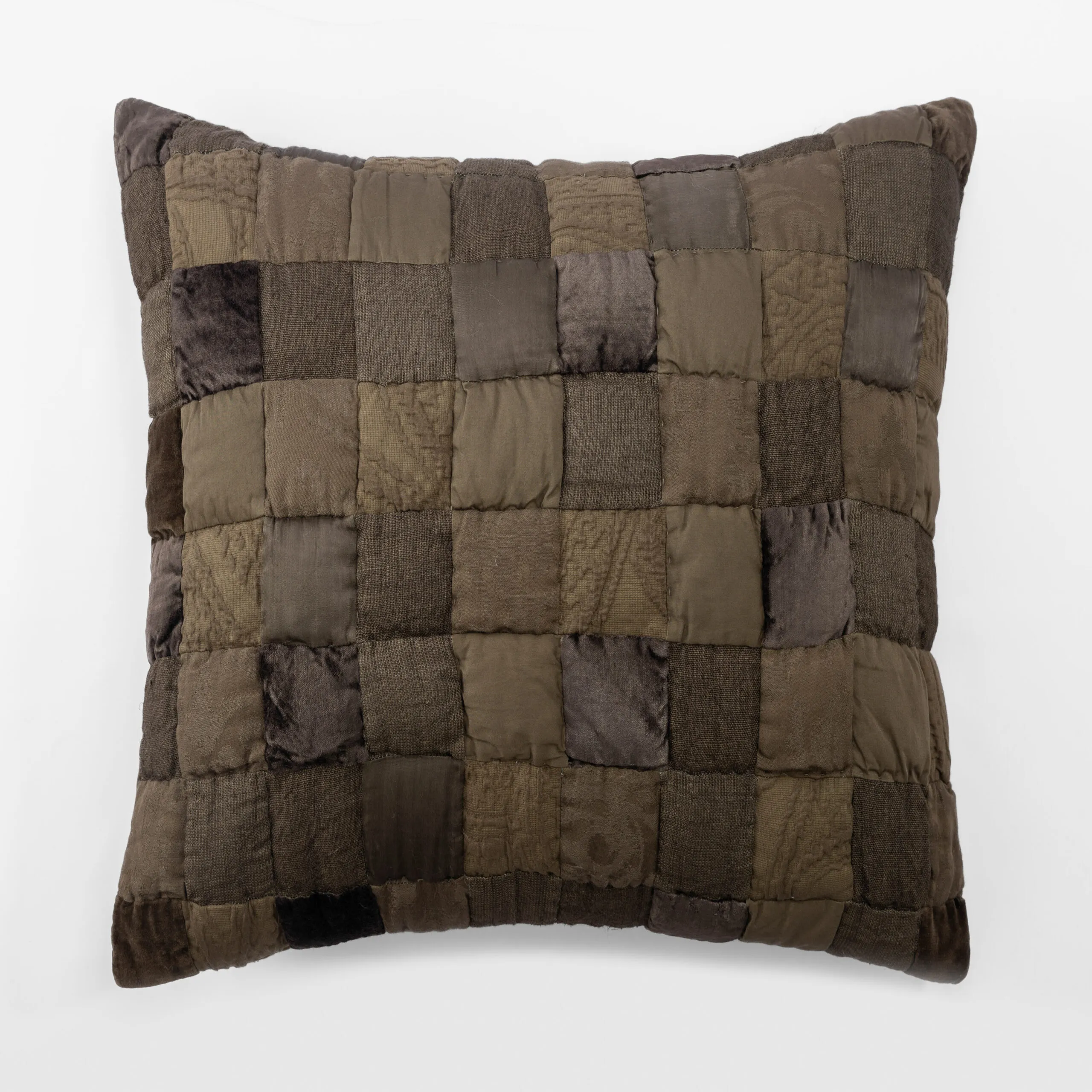 The Kai quilt features an overdyed patchwork that combines a range of textures, including cotton velvet, linen, and rayon velvet. Inspired by handcrafted Moroccan tiles, this quilt showcases various materials and textiles. Once the exquisite fabrics are pieced together, they are over-dyed to create a harmonious yet dynamic tonal palette, resulting in a rich and vibrant finished product.
