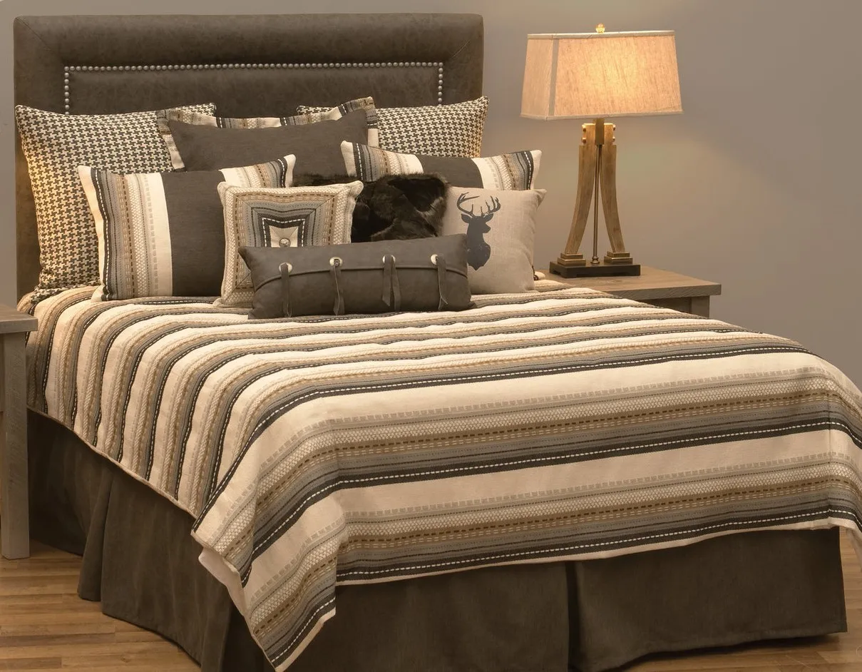 Adobe Quarry 9 PC Duvet Bedding Set includes 6 PC Duvet Set - Super Queen (bed cover, 2 shams, 2 euros, 1 alt euro), Pillow - 16" x 16", Saloon Grey Leather Pillow - 10" x 26" & Onyx Marbled Fox Faux Fur Pillow - 18" x 18"