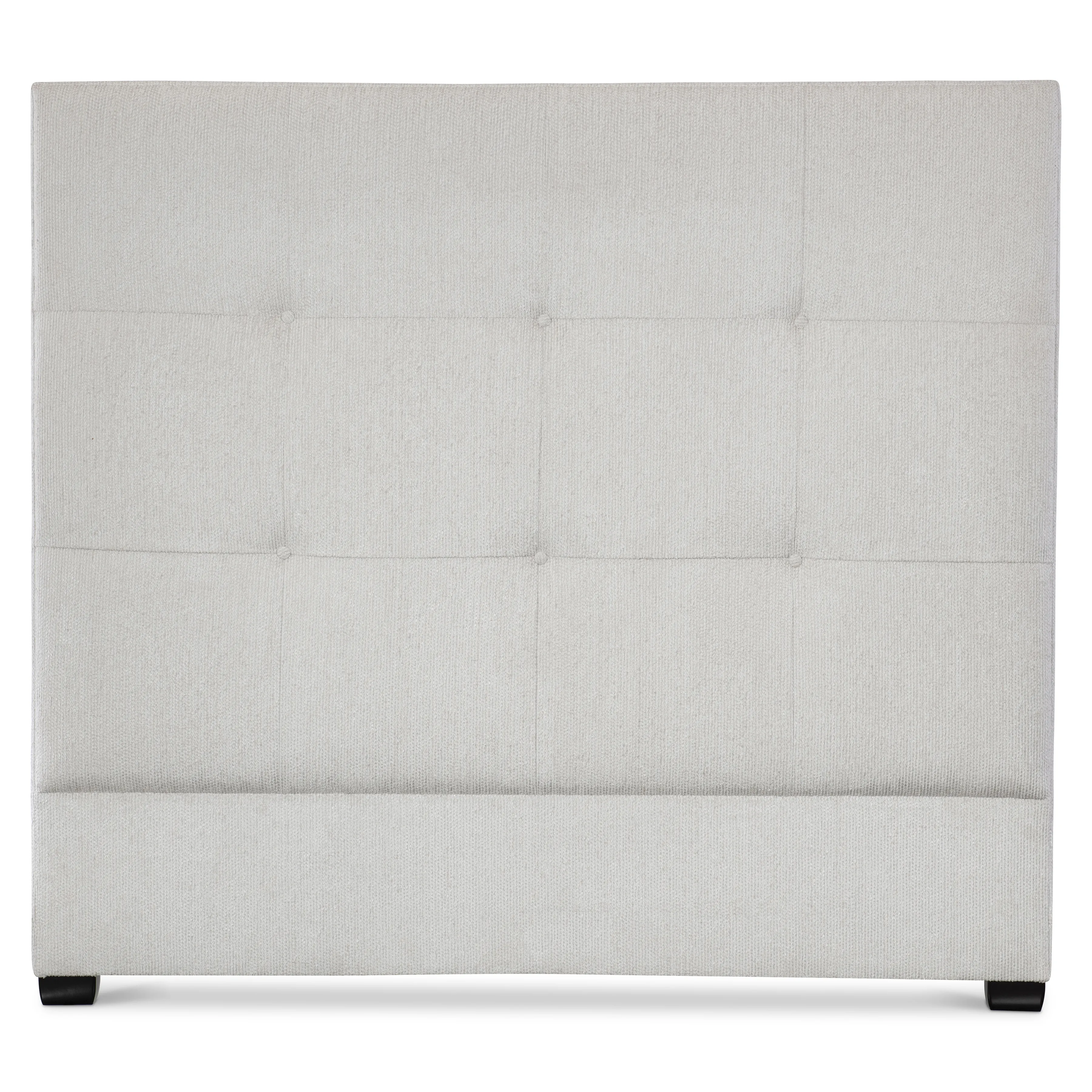 Fully upholstered headboard with button-tufting. Fabric: B576-002. No nail trim. Exposed wood feet in Espresso (E01) finish. FOR DISPLAY RACK ONLY.