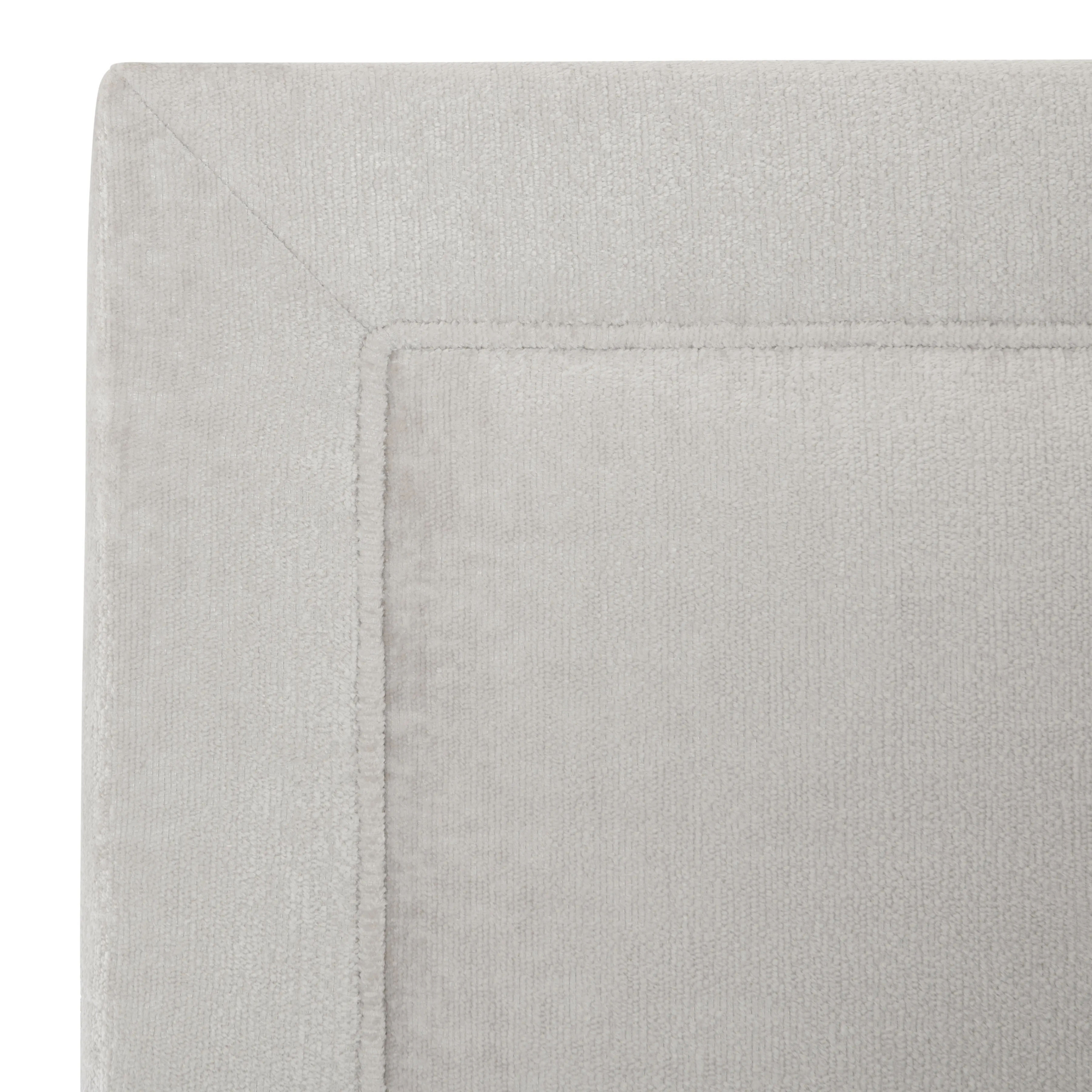 Fully upholstered panel headboard with nailhead trim around outside of interior "picture frame" panel. Fabric: B01-022. Headboard feet are finished in Espresso (E01). FOR DISPLAY RACK ONLY.