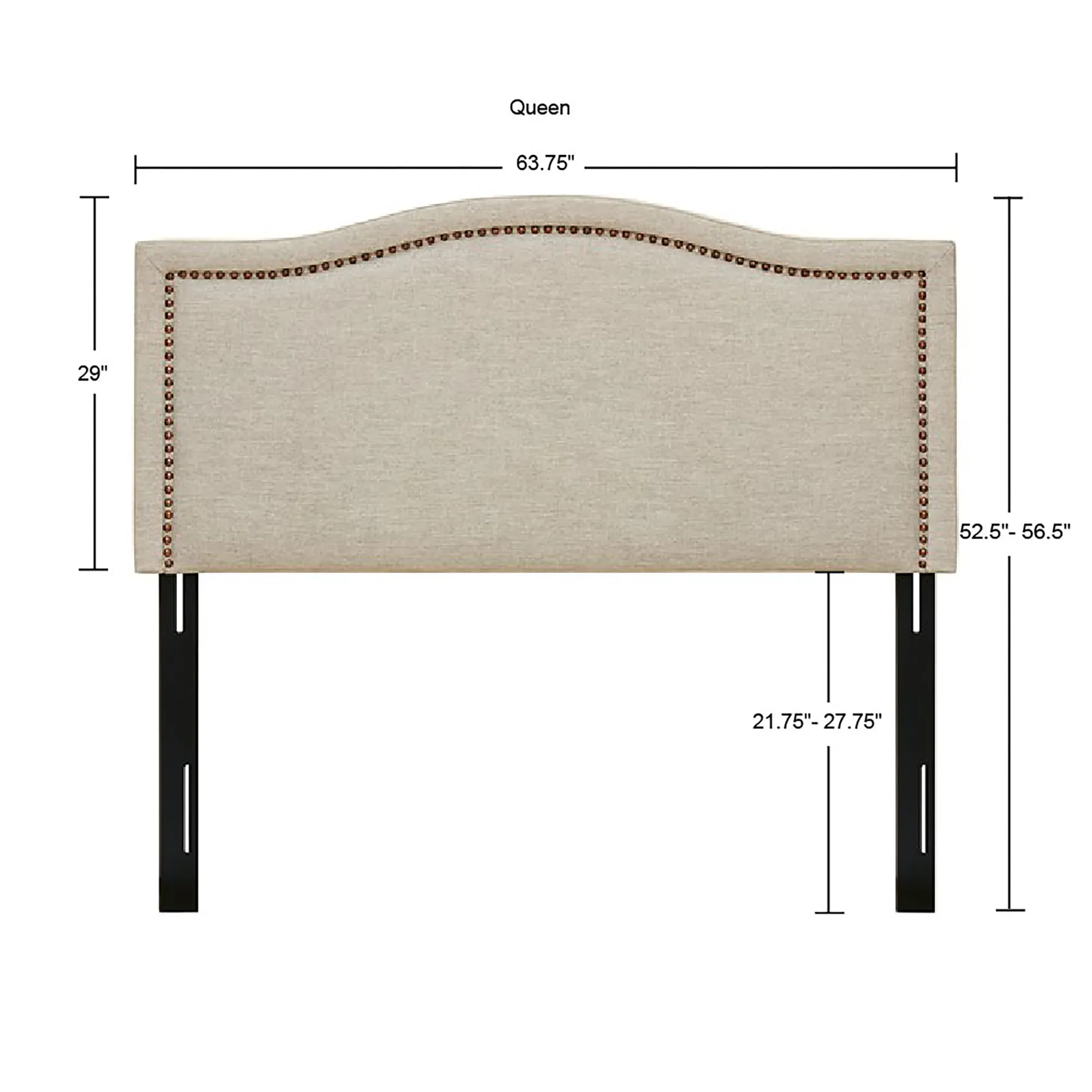 Elevate your bed with the refined look of the Madison Park Nadine Upholstered Panel Headboard. This headboard is upholstered with copper nail heads around the edge to create a chic transitional design. The adjustable black metal legs make it easy to find the correct height to fit your bed frame, while the plywood frame construction provides added stability and durability. Showcasing elegant and clean lines, this upholstered headboard offers a stylish versatility to complement any bedroom decor. Assembly required and tools are included. Hardware (pack B) included to attach headboard to standard bed frame.