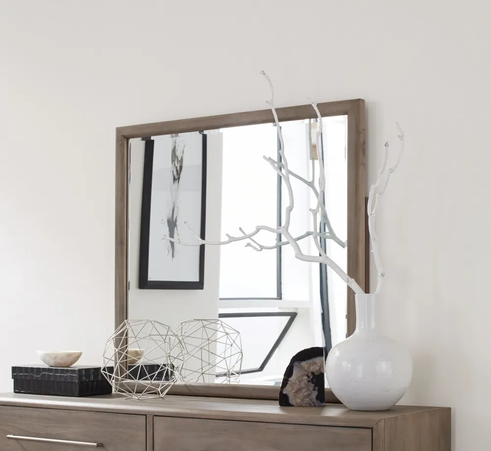 • Beveled mirror is outfitted with keyhole brackets for wall mounting.