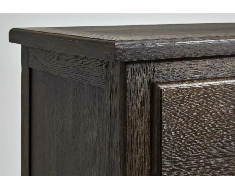 We envision this design complementing homes with a casual transitional aesthetic. Featuring craftsman style design motifs found in the great lodges and cabins across the countryside, the brown finish speaks to a rustic farmhouse aesthetic. Key design features include contemporary parsons style legs, proud drawer fronts and generously scaled drawer pulls inspired by a Belgian antique door handle.