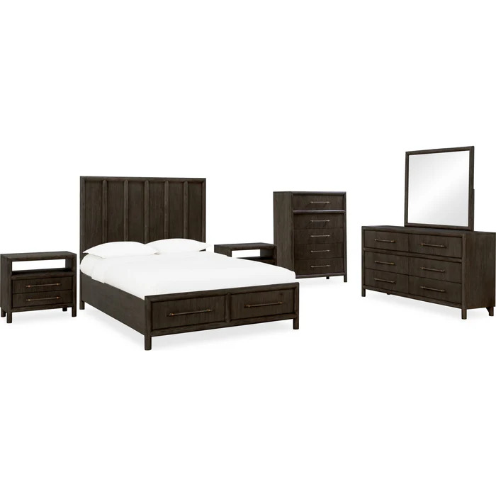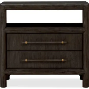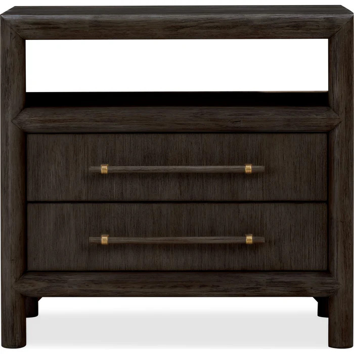 With thick round framing, vertical wood grain and a soft natural finish, the Dorsey Bedroom is an updated take on modern design. Made from Acacia solid wood and Acacia wood veneer, wire brushed wood surfaces simulate the patina of naturally weathered wood. Elongated wooden bar pulls complete the look.