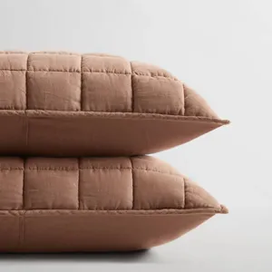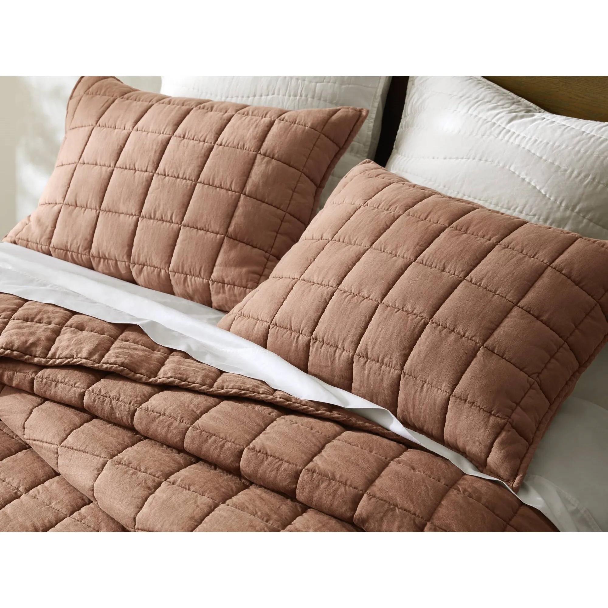 100% Linen King/California King Linen Garment Washed Quilt Set - Clay