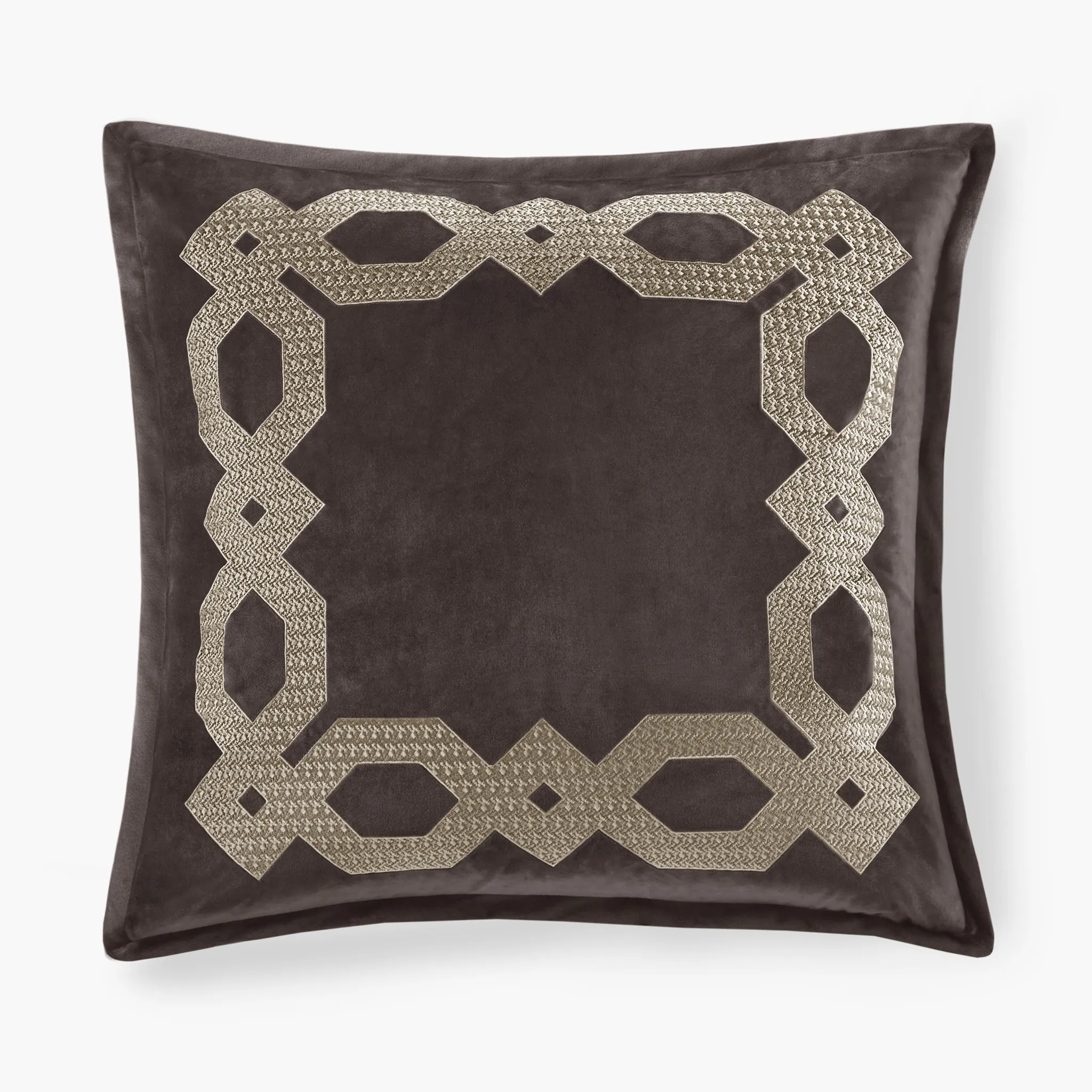 This decorative frame element is derived from geometric shapes and embroidered with metallic yarn using bold stitching lines. The luxurious velvet presents layered and varied color tones from different angles. It is soft to the touch and enjoyable to the eyes.