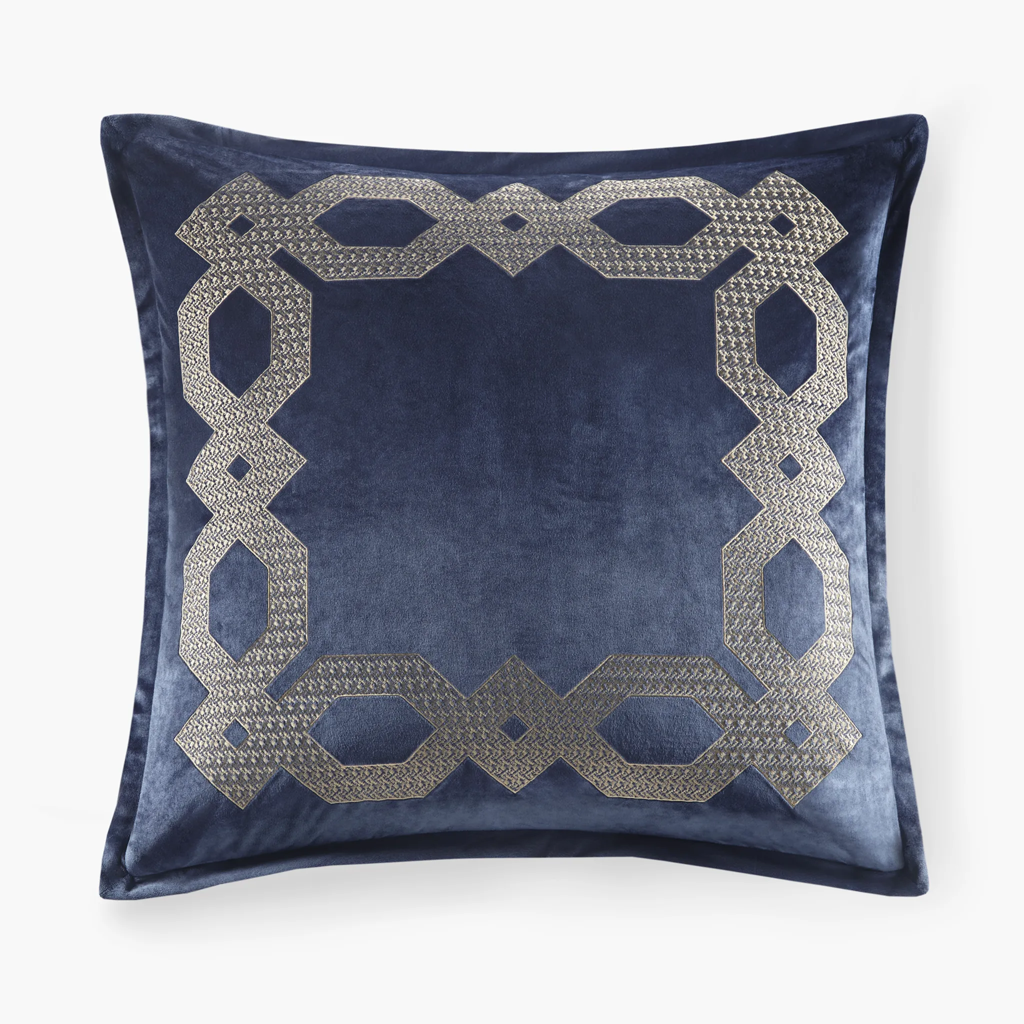 This decorative frame element is derived from geometric shapes and embroidered with metallic yarn using bold stitching lines. The luxurious velvet presents layered and varied color tones from different angles. It is soft to the touch and enjoyable to the eyes.