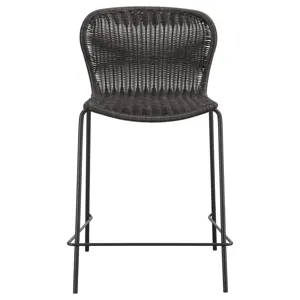 Designed with a mid-century-inspired aesthetic, this contemporary stool offers a charming brown faux rattan seat, nestled in place by an open, airy frame. The seat offers a subtle contoured shape that cradles the torso and offers a comfortable place of rest. Supporting the seat are slender tubular legs in a sandy black finish, pushing the dark tones and hues to create a dramatic, moody feel. Natural elements collide to offer a boho-inspired touch to bars, breakfast nooks and more. Pull this stool up to an elevated dining space for a casual seating arrangement.