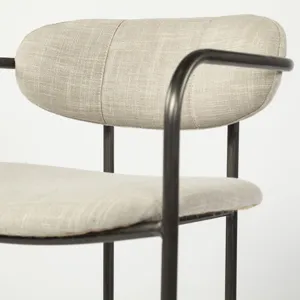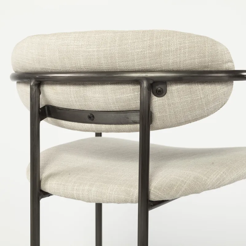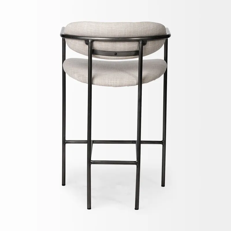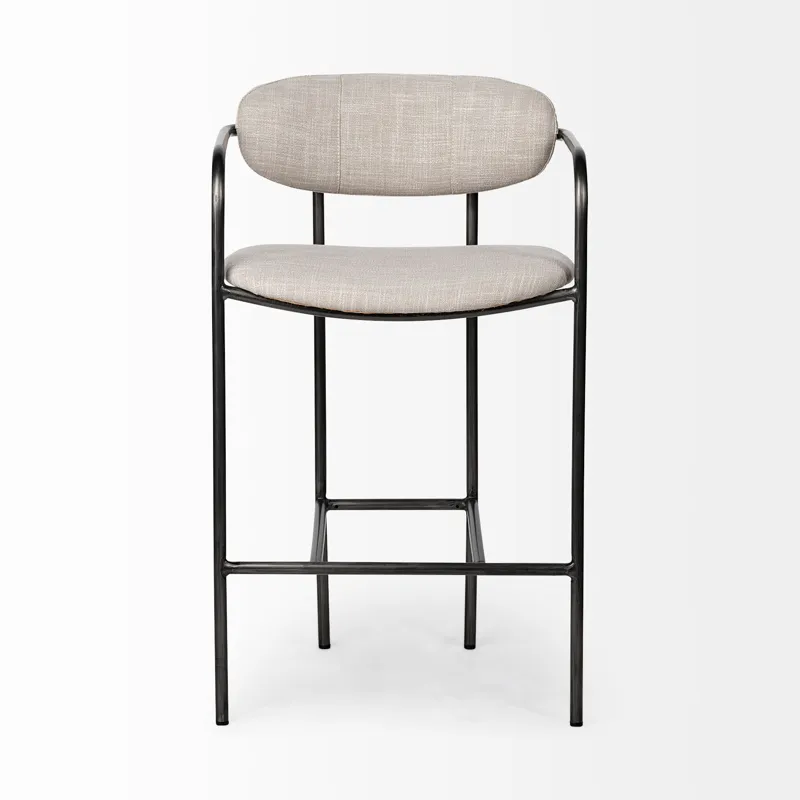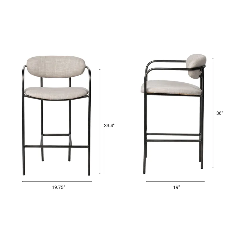 The Parker II is a spectacular counter-height chair that features a beige, fabric-covered seat and backrest mounted on a sleek, gun metal grey metal frame. The frame on the Parker II is molded such that it extends to provide armrests and a footrest, resulting in exceptionally comfortable seating experience. The combination of beige upholstery on a metal frame looks stunning and makes the Parker II a great fit for spaces based on the Mercana Modern, Coastal and Enduring Elegance design styles.