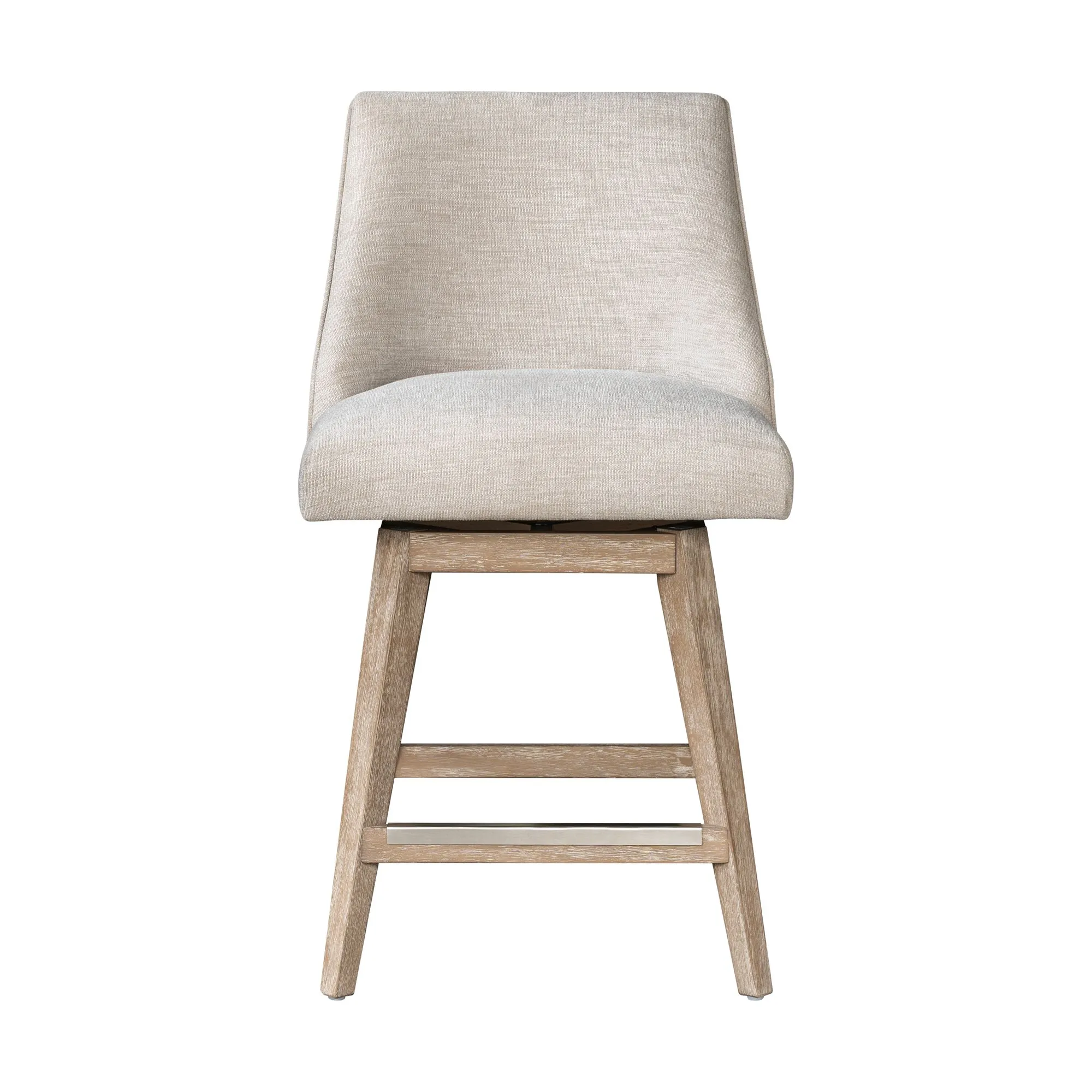 The Winfield Counter Stool from Martha Stewart’s Bedford Collection blends farmhouse charm with everyday function. A tailored silhouette, piped upholstery, and armless design offer refined style and space-saving versatility. The curved back, padded seat, and 360° swivel deliver comfort and ease. Solid wood legs in a distressed finish include adjustable levelers for stability. Perfect for kitchen islands, breakfast bars, or workspaces. Add timeless comfort to your home—shop now!
