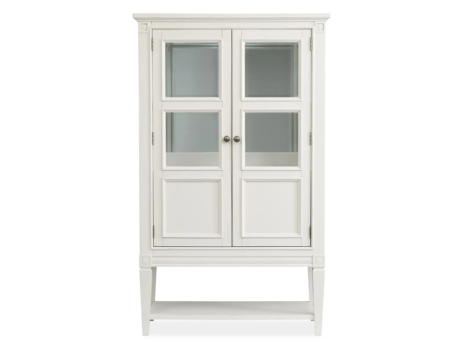 - 2 wood framed tempered glass doors and 1 adj. wood framed tempered glass shelf and 1 drawer and 1 adj.wood shelf and and 1 bottom wine storage shelf behind the doors