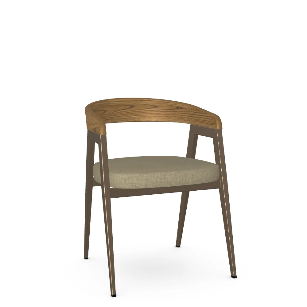 The Carmela dining chair is a true expression of Scandinavian design. Its curved wooden backrest gracefully extends to form armrests, creating a sense of continuity and elegance. The plush upholstered seat enhances its inviting appeal, while sleek metal legs add a touch of refinement to its overall aesthetics. A perfect balance of style and comfort, the Carmela chair will undoubtedly enhance your living space!