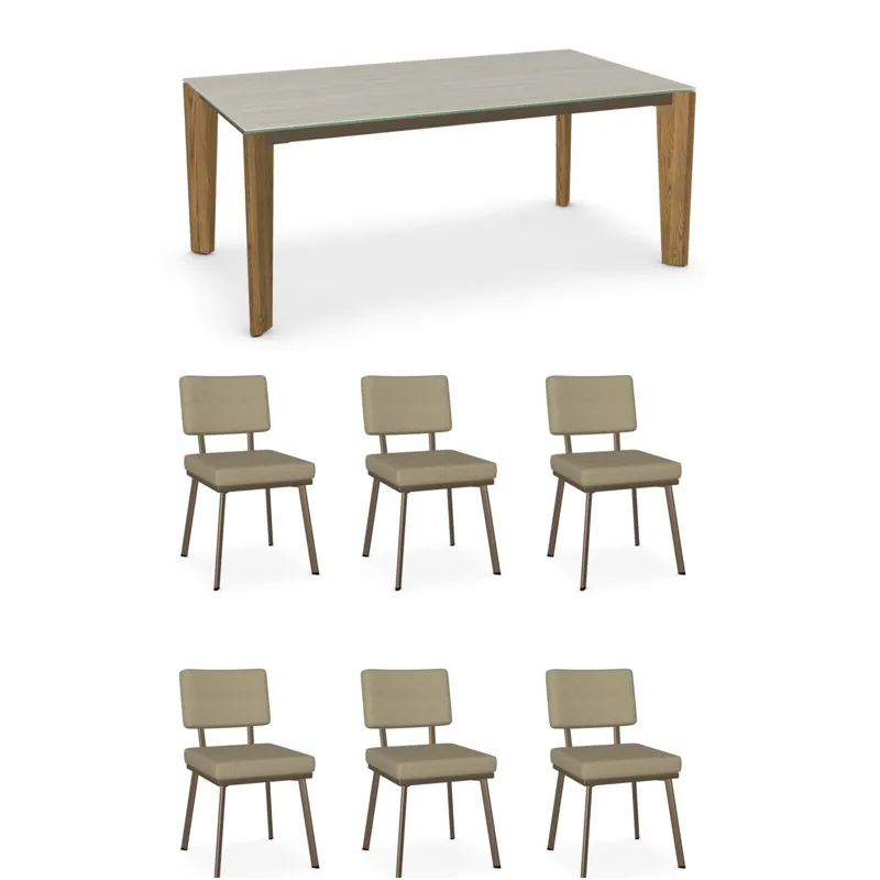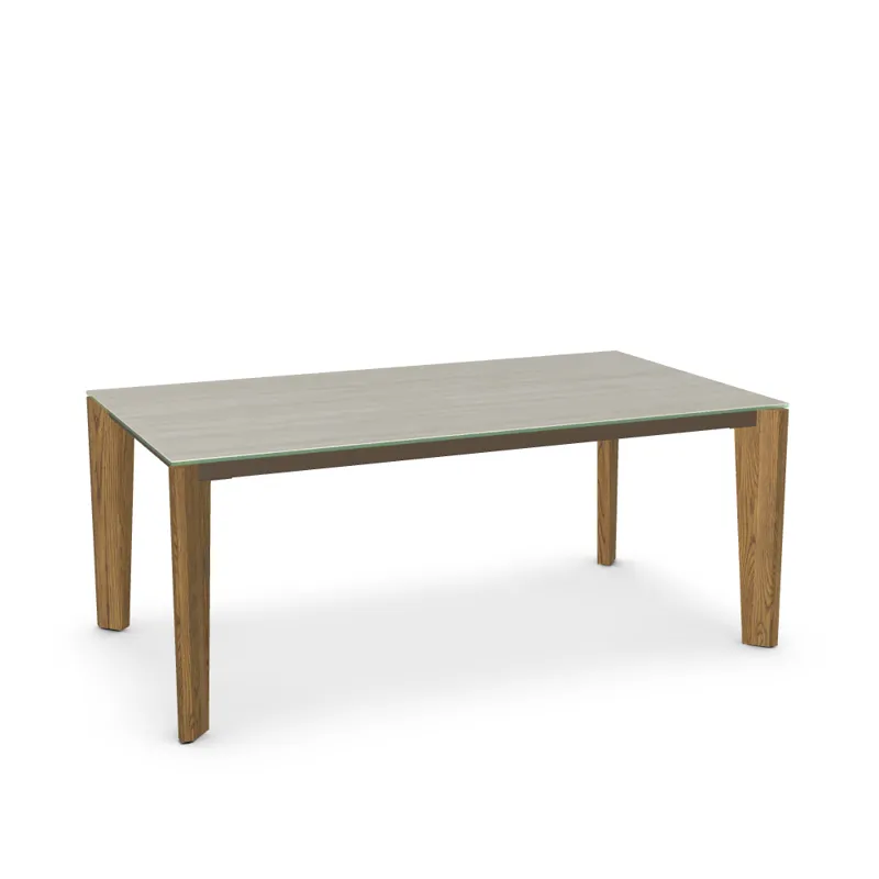 The Fabiola dining table is a stunning statement piece, bringing character to any modern interior. Its beautiful wooden legs, with subtle angled details, bring warmth and elegance to the design. The mix of material creates a refined contrast, adding a contemporary touch while maintaining a sense of natural charm. Supported by a sturdy metal frame, this table offers both style and durability, making it the true heart of your dining space.