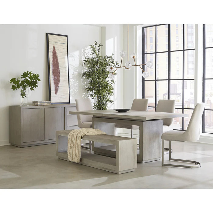Sleekly tailored. With bold proportions, crisp, modern lines and a weathered finish, the Oxford collection makes a striking first impression. Smartly accented with top-mounted nickel plated pulls and a floating plinth base. Available in Mineral.