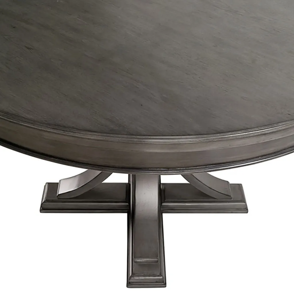 Gather round the Madison Park Signature Helena Round Dining Table. Featuring a grey wood finish with distressed edge detail, this round dining table adds a subtle elegance to your kitchen. Assembly is required.