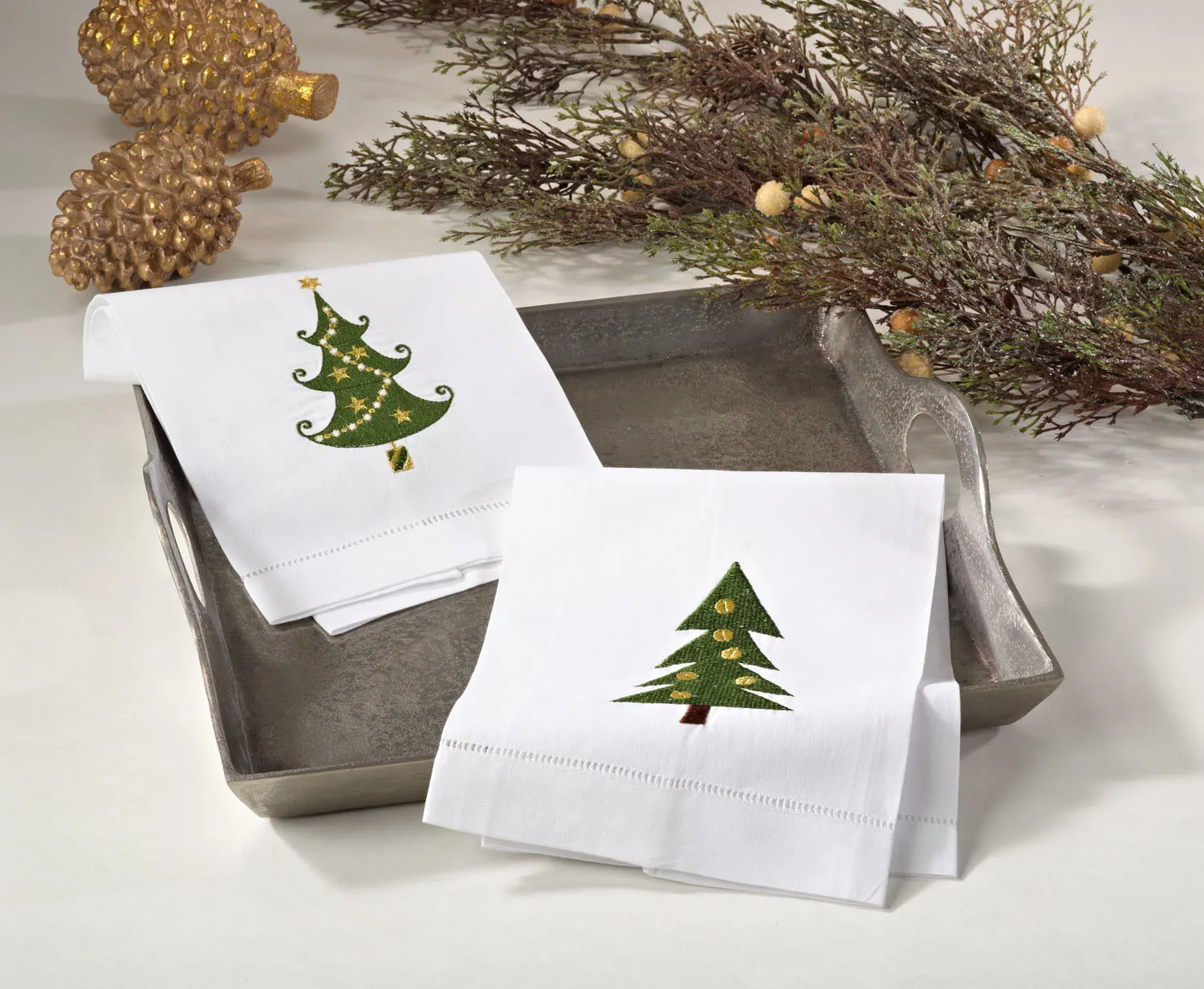 Embroidered and hemstitched christmas tree design towel. 55% linen - 45% cottonimported