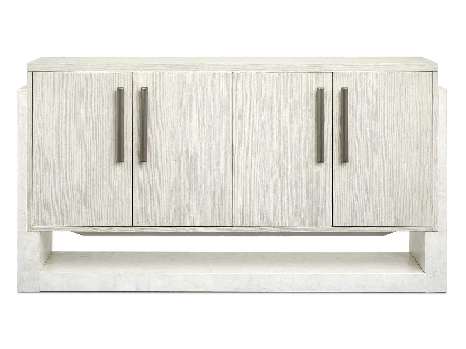 - 4 wood doors on top and 2 adj. and removable and reversible wine storage wood shelves behind the doors