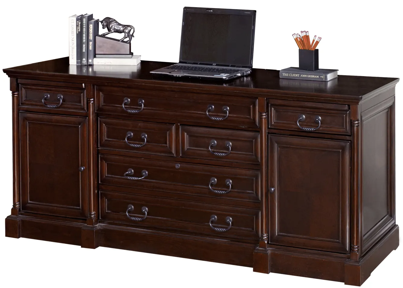Inspired by the kathy ireland Home™ Americana Style Guide™, Mount View offers contemporary conveniences with traditional design elements for today's home and executive office. Holding true to traditional American beauty, this furniture collection boasts richly grained hardwood with cherry veneers and book matched panels. Incredible durability, style and adaptable configurations combine to form a timeless collection. Elegant, yet relaxed and steeped in the very best of our country's heritage, the Americana Style Guide™ offers rustic simplicity at its finest. Americana seeks to embody the diversity and rich traditions of our nation through the use of subtle distressing and inspiration from colors such as Yellow Corn, Green Grass and Wheatfield Brown. Unique and intricate detailing, the use of an eclectic array of materials and incredible durability are the cornerstones of this traditional style.