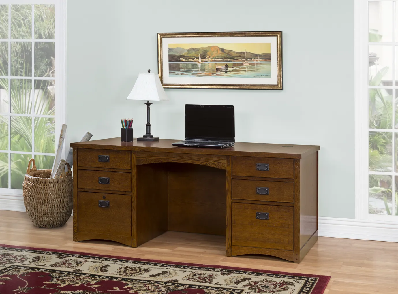 Inspired by the kathy ireland Home™ Americana Style Guide™, Mission Pasadena combines turn-of-the-century mission design with rustic simplicity. The glow of natural wood complemented by the mission-inspired finish and decorative structures make this collection a comfortable addition to any office.