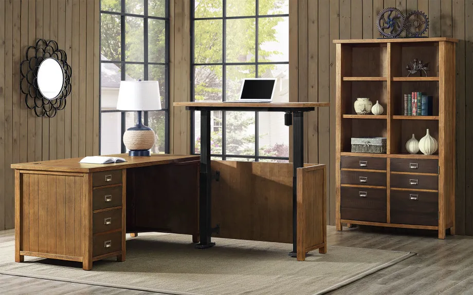 The Heritage Collection with it's rough sawn texture and plank top design reflects the quality hand-made furniture built in simpler times. The chatter marks, rustic index card hand pulls and dovetailed drawers bring a simple statement of quality into your home.