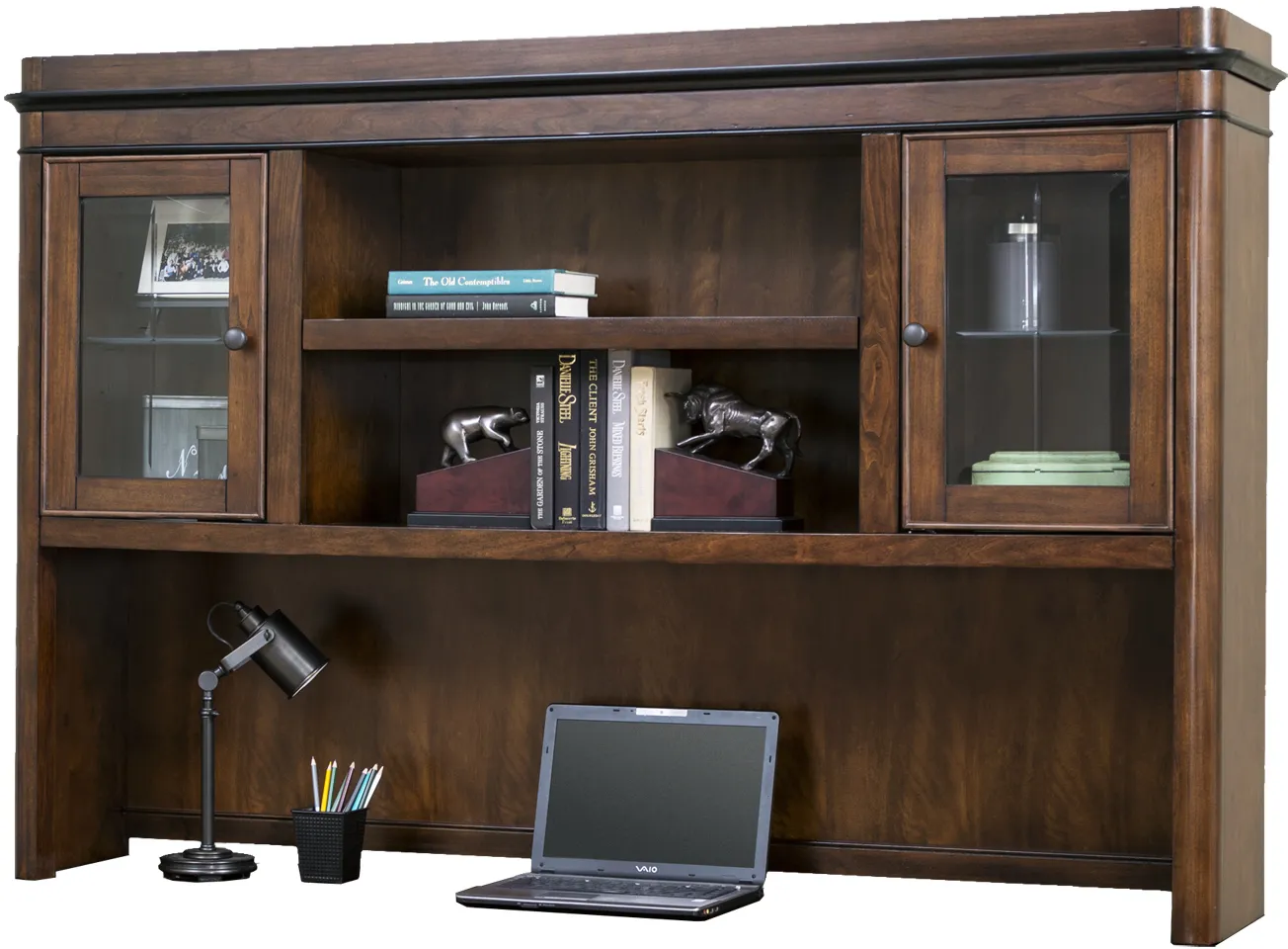 Inspired by the kathy ireland Home™ Architectural Style Guide™ and Biedermeier style, the Kensington collection is comfortably contemporary, showcasing a warm fruitwood finish and contrasting black cove and black bead molding. The tops have reversed diamond matched veneers with a black inlaid border. The posts of the cases are quarter-round and the drawers are accented by half-round molding and ash colored drawer pulls. Kensington is crisp and contemporary without seeming out of place in traditional settings because of the warm finish and understated design elements. This style is deeply influenced by clean lines, minimalism and simplicity; where form follows function. Understated colors with an emphasis on neutral tones combine to produce a sophisticated, appealing and comfortable style. Products inspired by this Style Guide™ are designed to mix easily with furnishings and accessories from other time periods to create an unmistakably modern feel with impeccable flair.