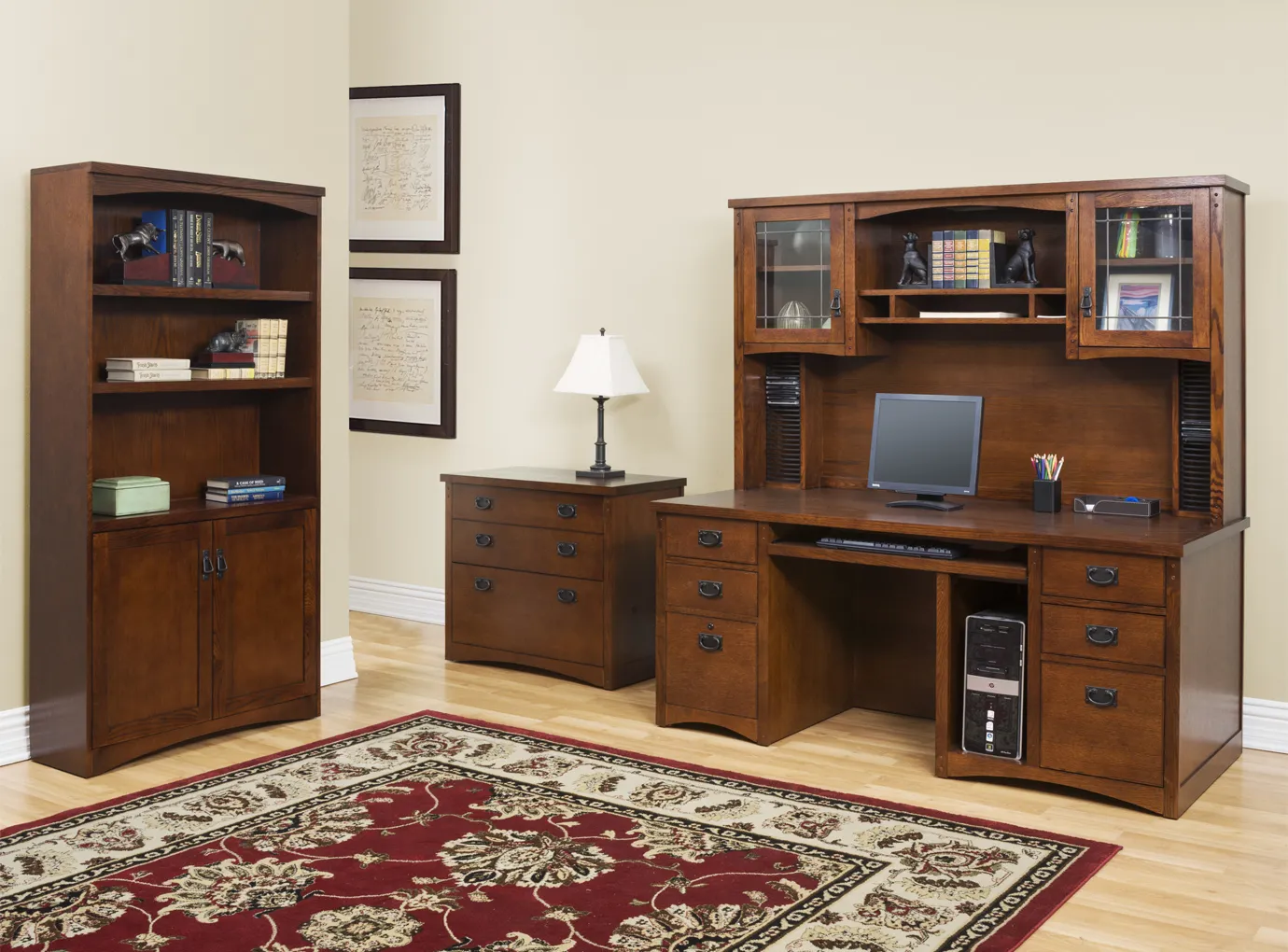 Inspired by the kathy ireland Home™ Americana Style Guide™, Mission Pasadena combines turn-of-the-century mission design with rustic simplicity. The glow of natural wood complemented by the mission-inspired finish and decorative structures make this collection a comfortable addition to any office.