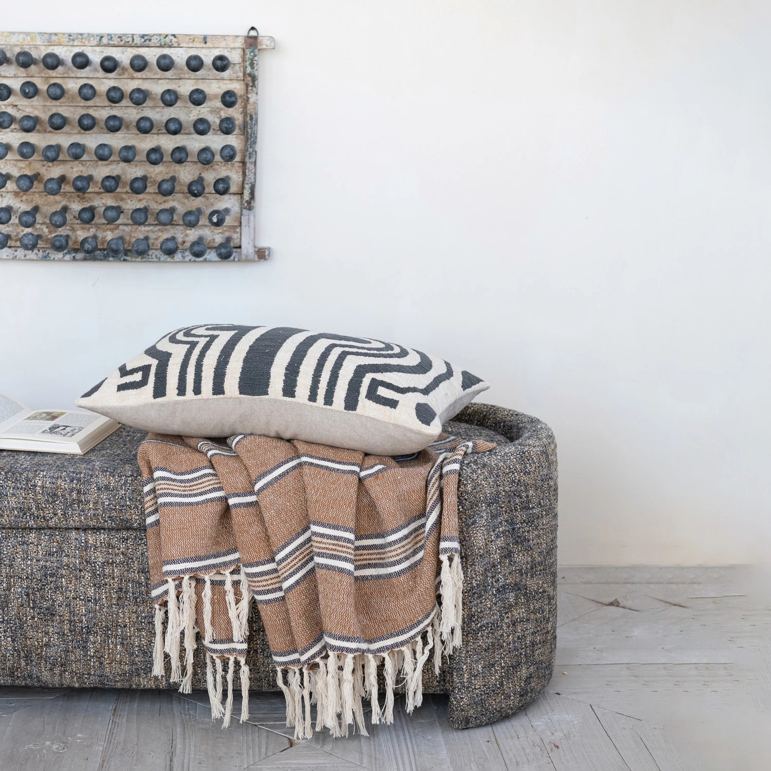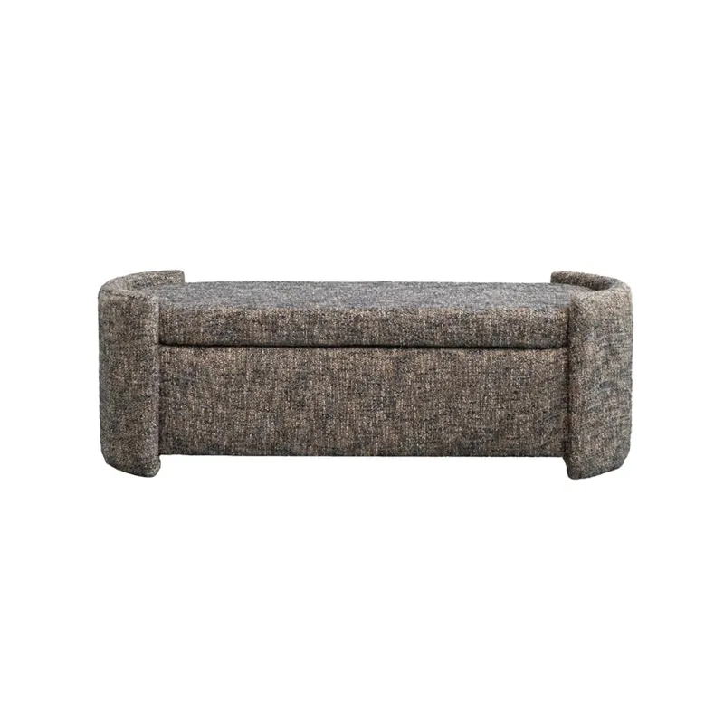 51"W x 18"D x 17"H MDF & Cotton Upholstered Bench w/ Lined Storage, Grey & Brown Melange