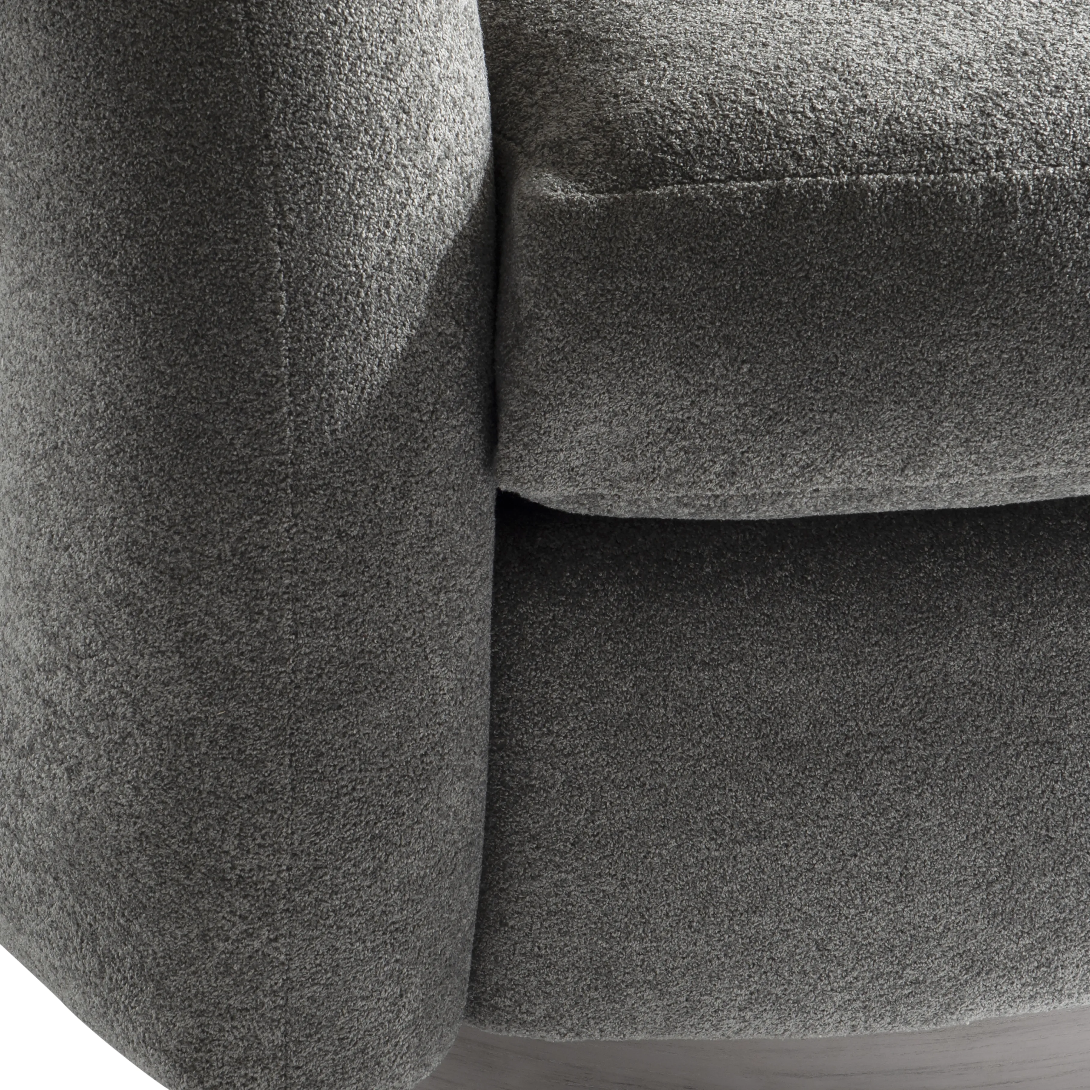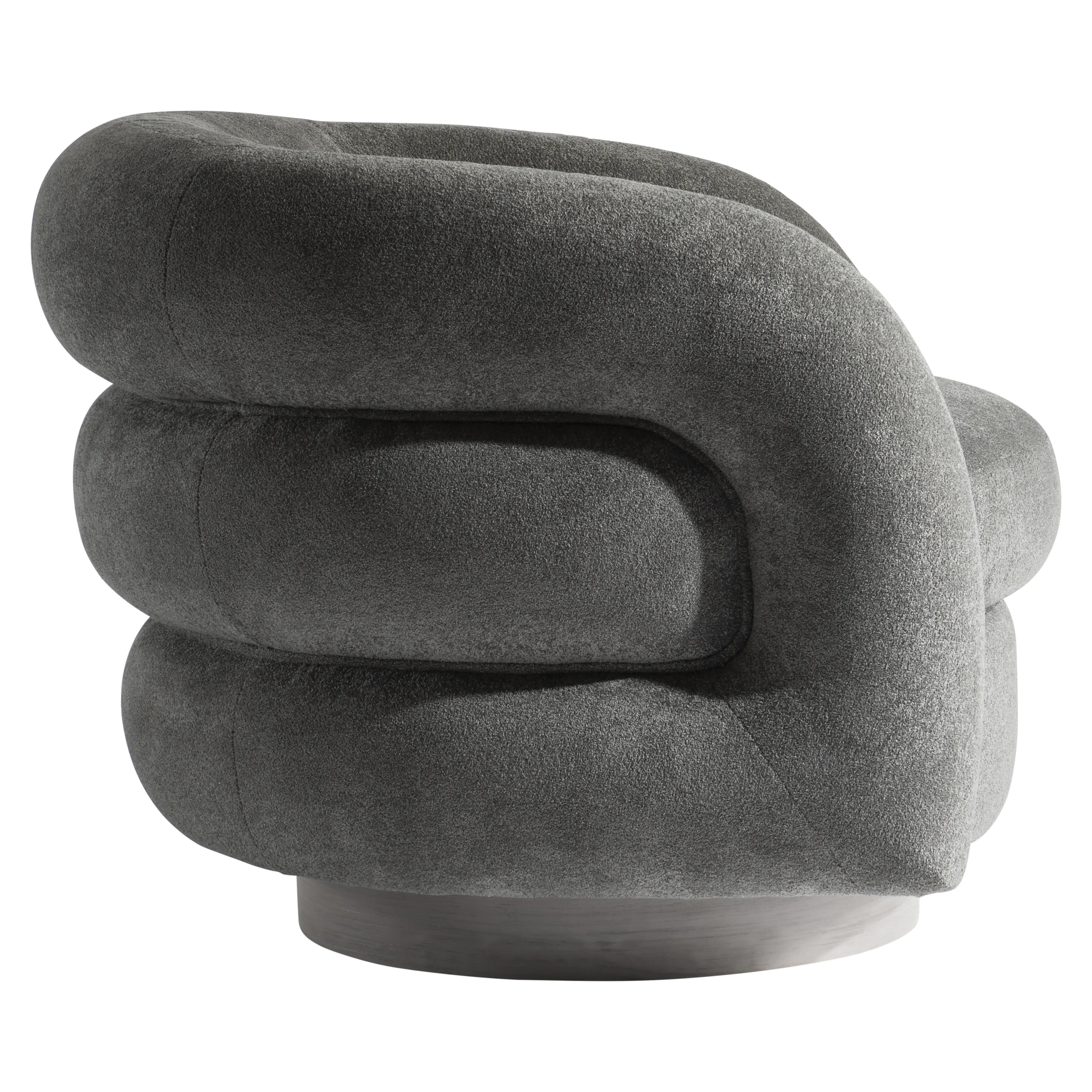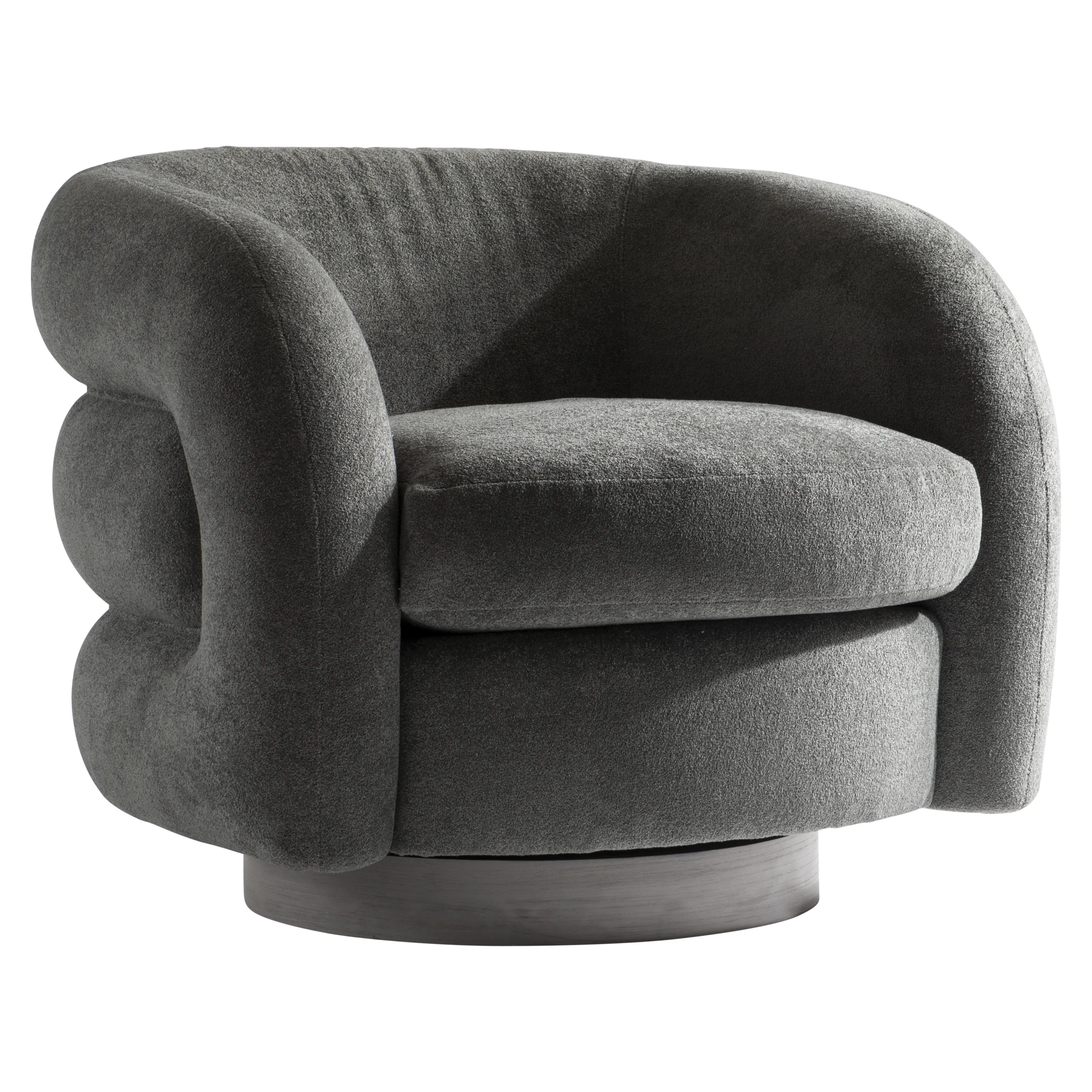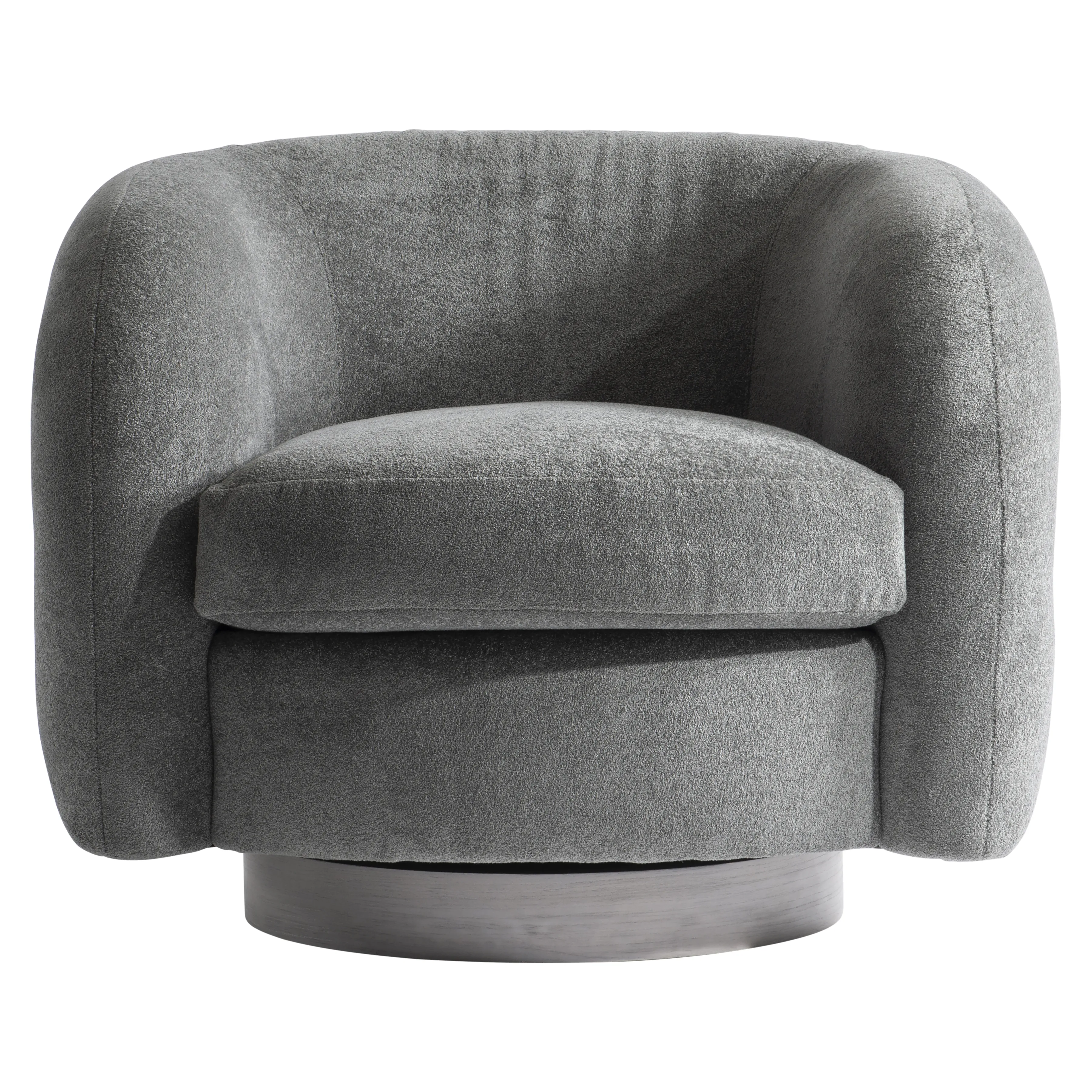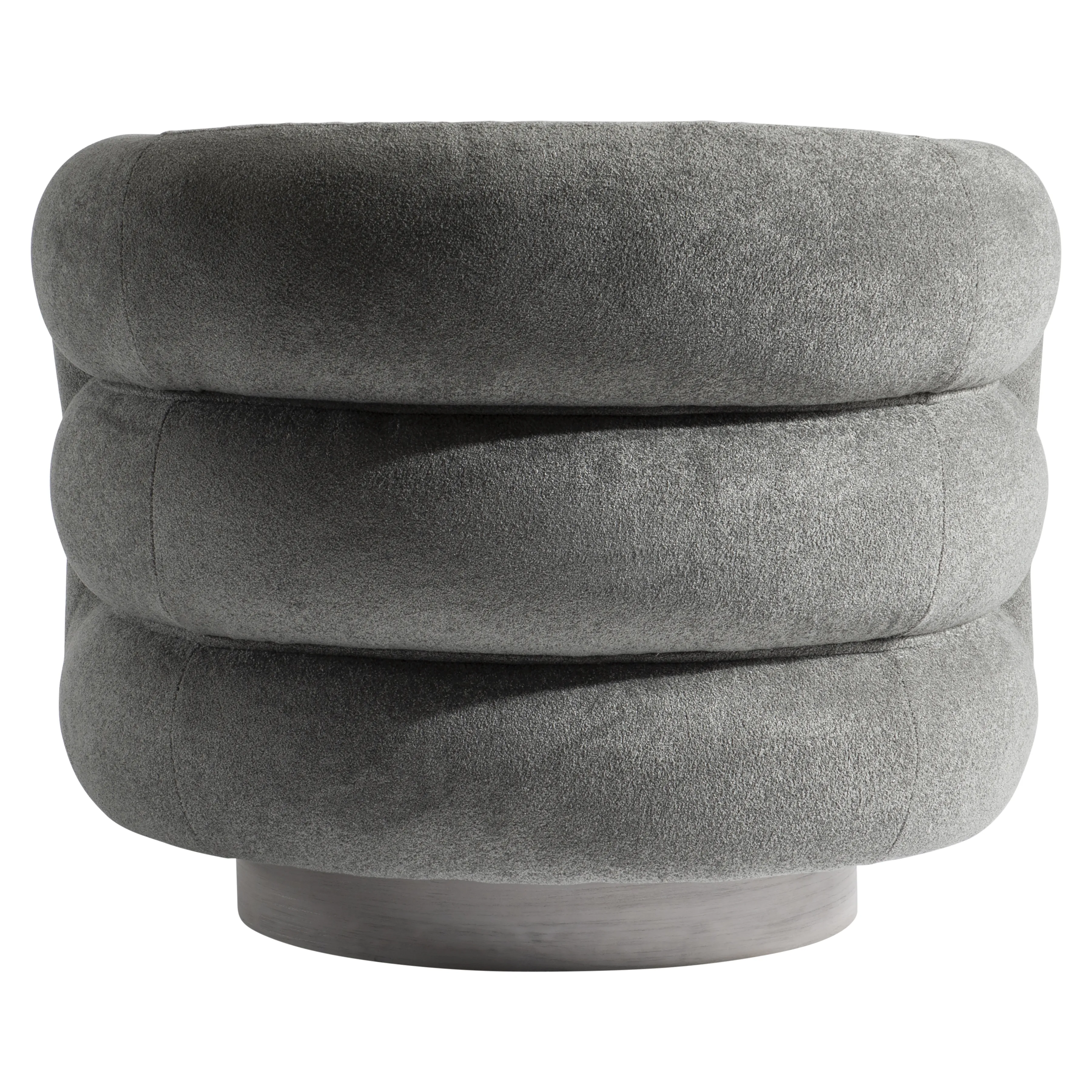 Three lush horizontal channels create an opulently comfortable design in the Milo swivel chair. The top and bottom channels - inspired by 1970s styles - swoop around to encompass the center channel. The seat, base and back are all comfortably styled for the ultimate escape, while the base offers smooth sailing in a 360-degree swivel.