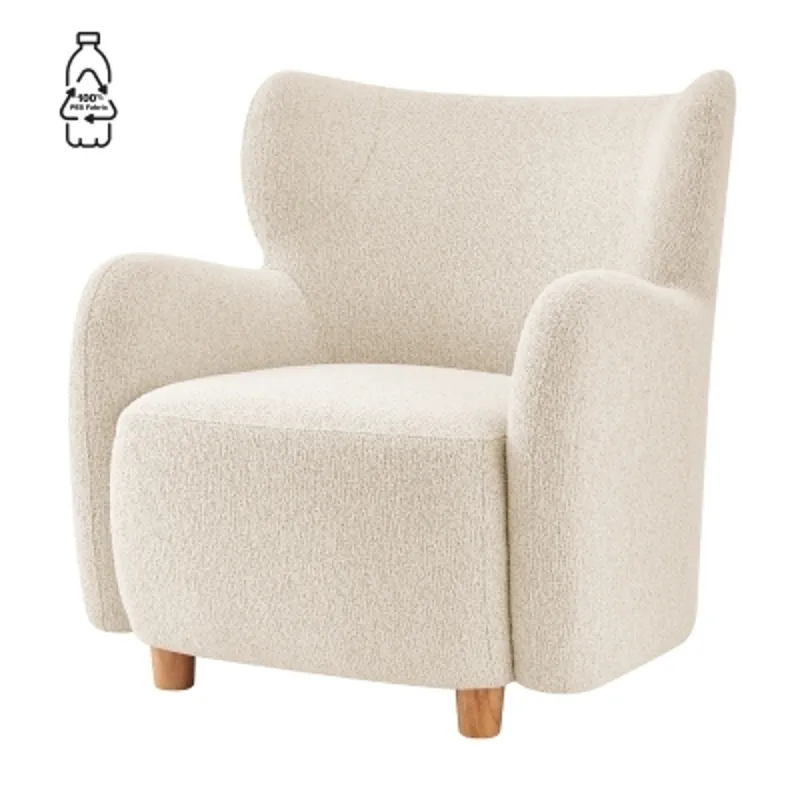 Get a refreshed vibe by adding this cozy accent chair. Favorite highlights are the soft, curved silhouettes, low-slung seat in easy-care fabric and whimsy solid wood legs. High-density foam cushion offers comfy seating for lounging around. Plastic glides are included for safety and stability.