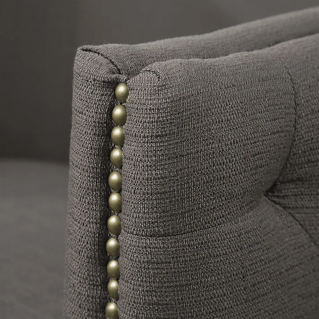 Upgrade your living room with this Madison Park tufted barrel swivel chair. Its curved back and arms, nailhead accents, and rich upholstery make it a luxurious addition to any space. With high-density foam and a sturdy wood frame, it provides exceptional comfort and support. The swivel chair comes fully assembled for hassle-free setup.