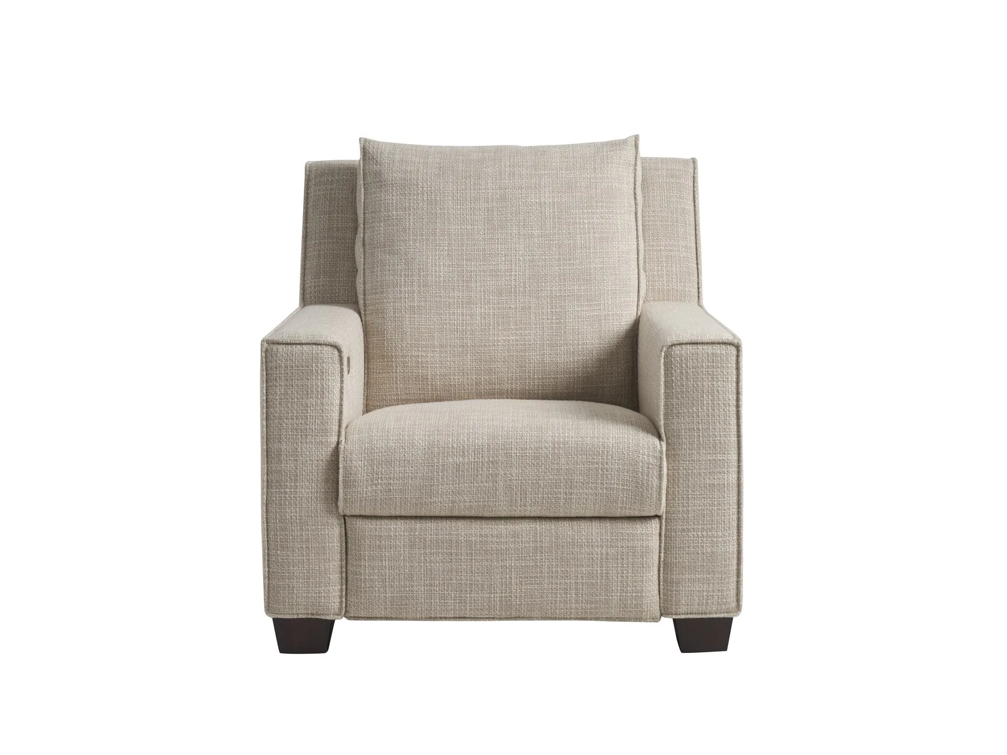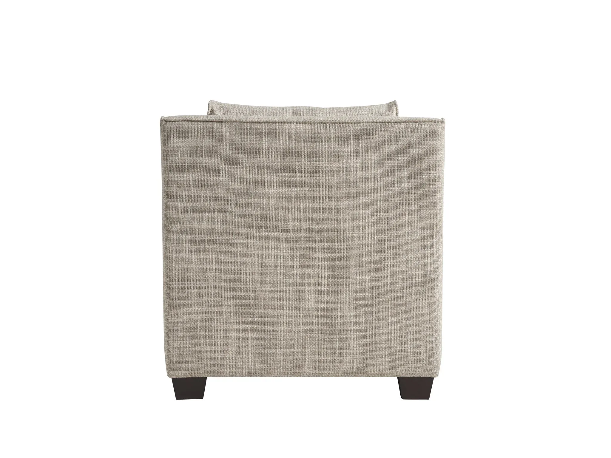 The Tucker collection features tall, plush cushion backs, robust armrests with flange detailing and spring down seating. Shown in performance fabric Curl Egret.