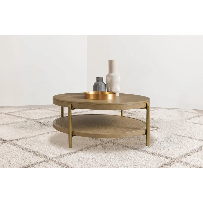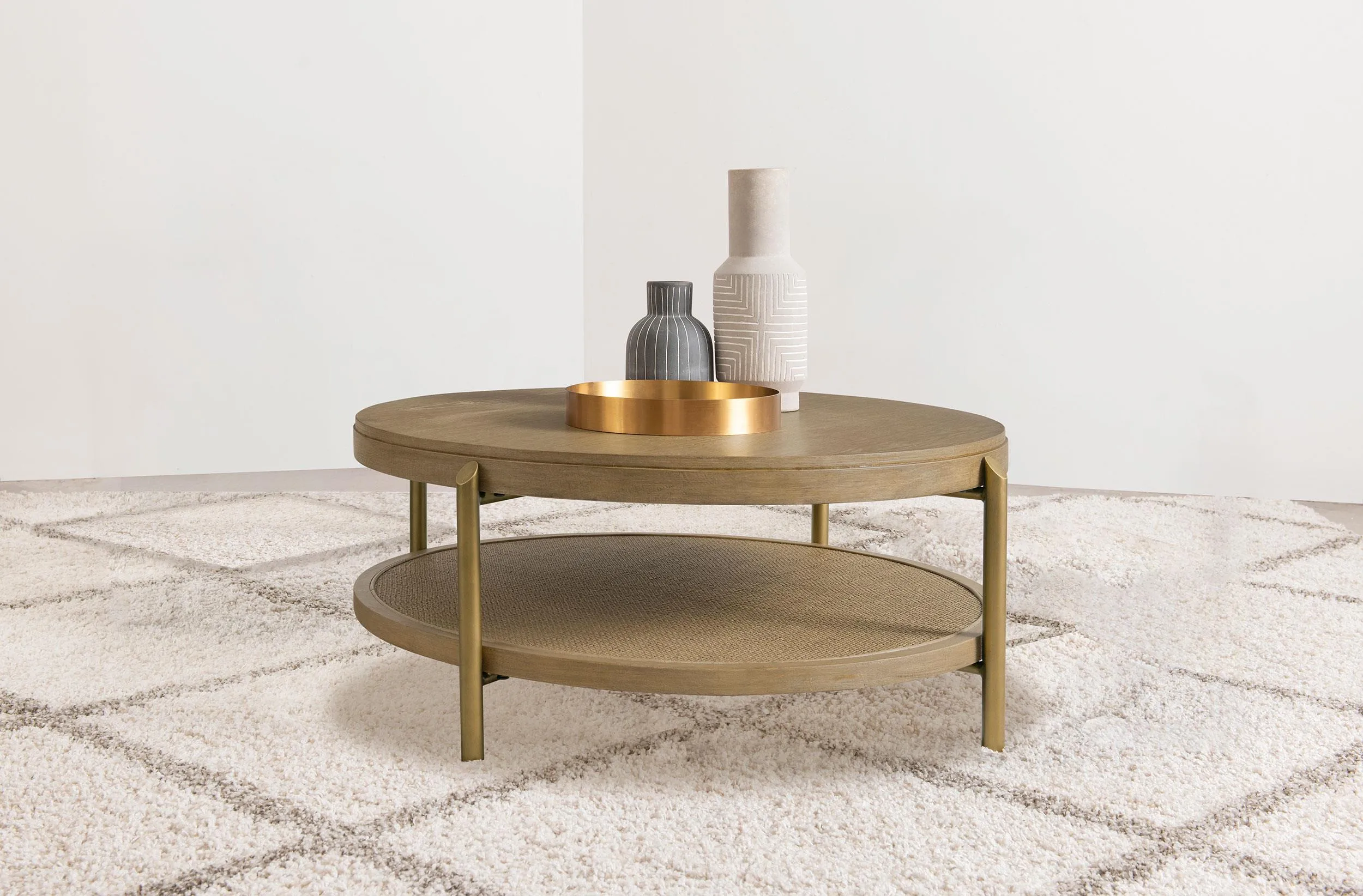Arini Round Coffee Table With Storage Shelf Sand Wash