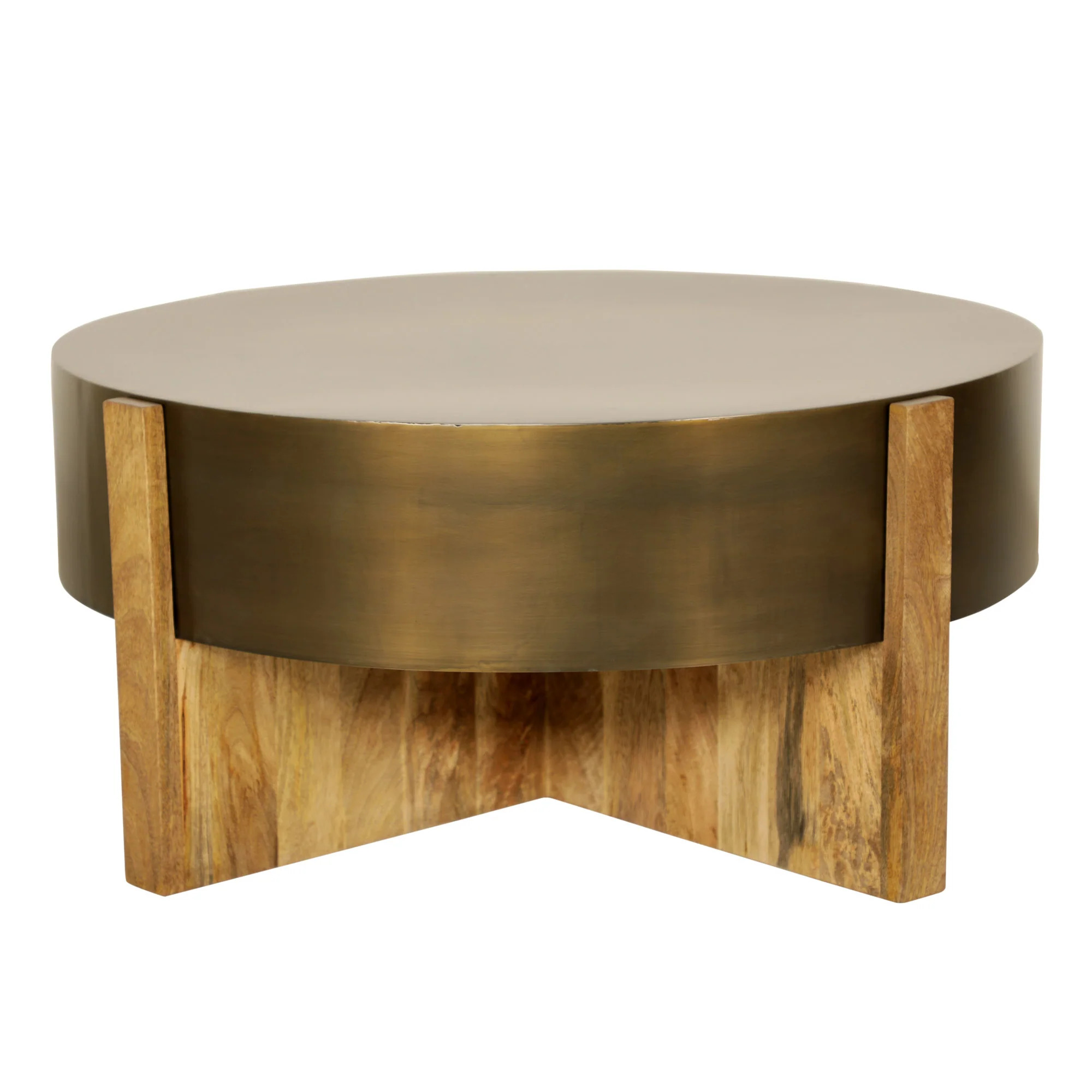 Aspen pairs bold form with rich mixed-media style. Crafted from mango solids in a warm Barton Bronze finish, its floating metal drums create striking contrast and dimension. Built with kiln-dried wood for lasting strength and stability, Aspen delivers sculptural presence with everyday durability