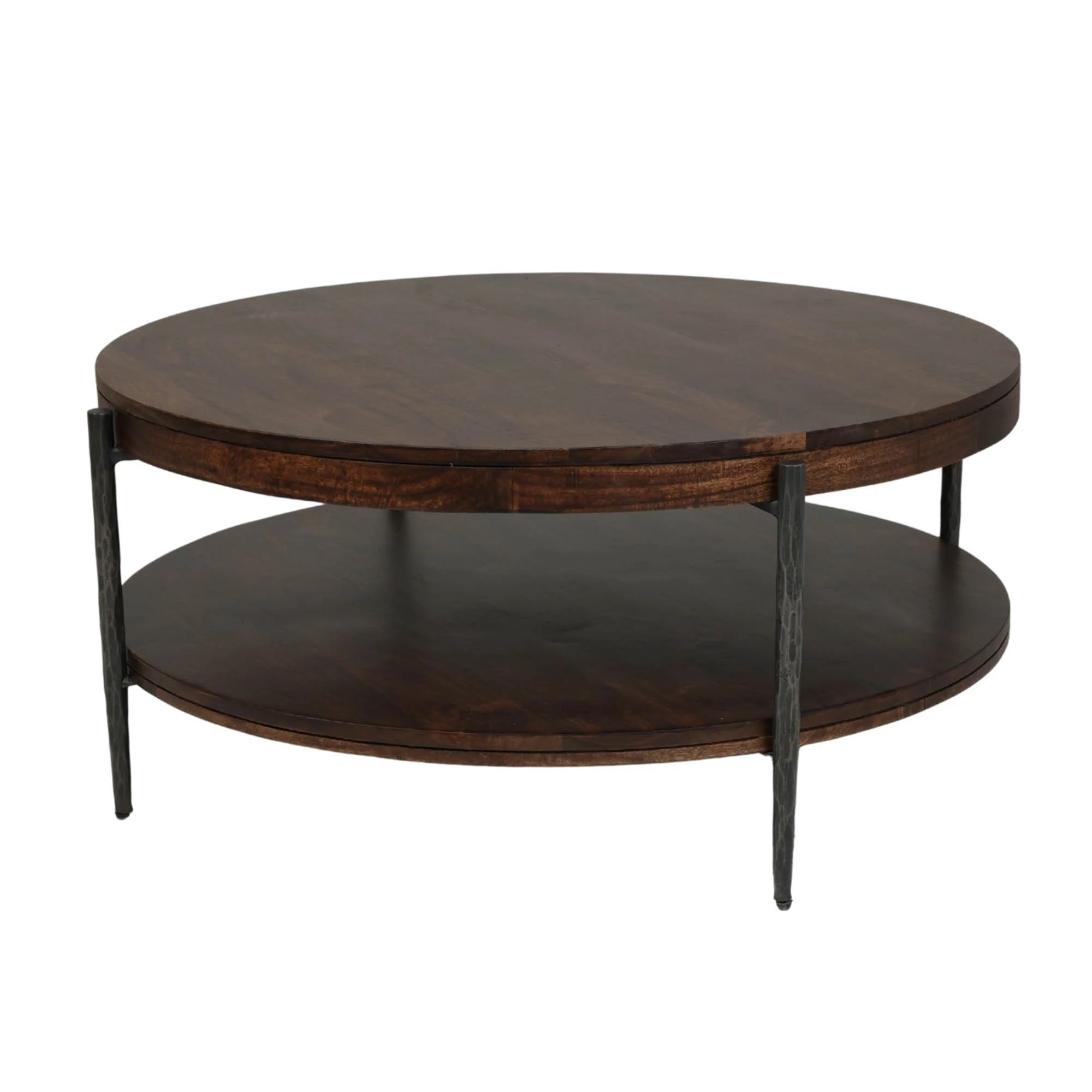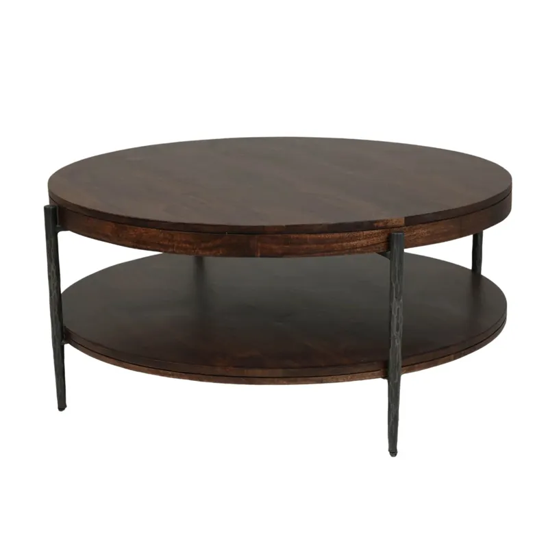 Bengal makes a strong statement with its bold scale and mixed-media design. Crafted from kiln-dried solid wood and paired with handcrafted hammered metal, it delivers rich texture and lasting durability. The generously sized cocktail table anchors the room, while both pieces feature a convenient undershelf for display or storage. Clean construction with no visible hardware keeps the look seamless and refined.