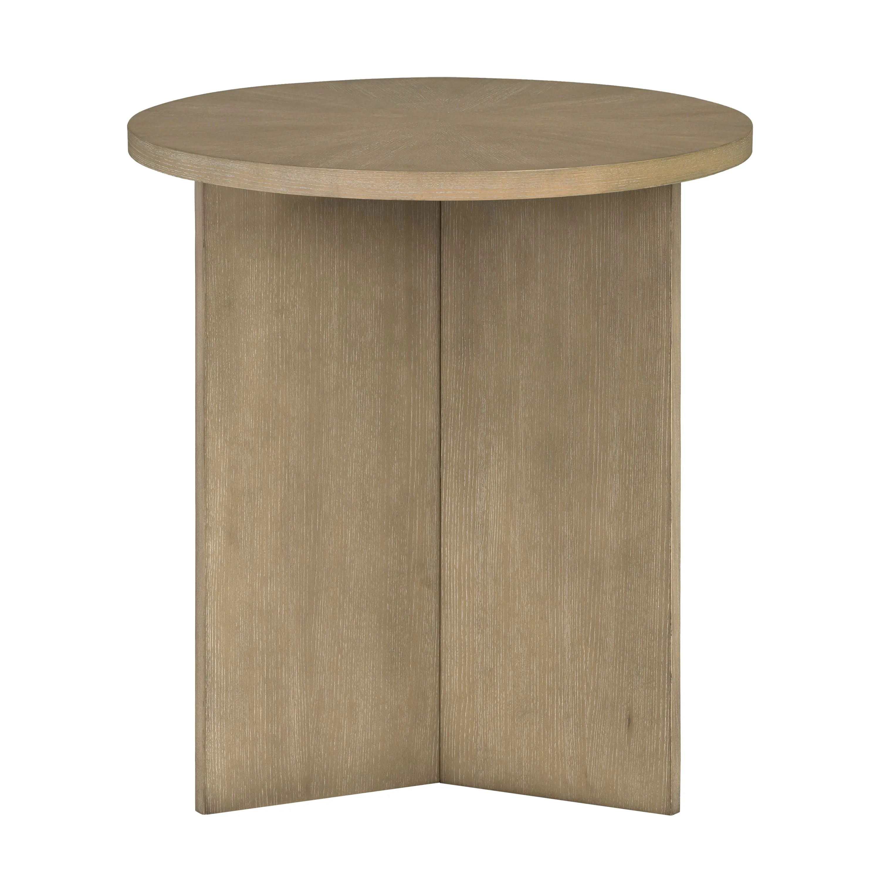 Compact round side table with sculptural lines and a starburst wood veneer top. A versatile accent for small spaces—use as a nightstand, end table, or stylish display piece. Built for everyday function and effortless style!
