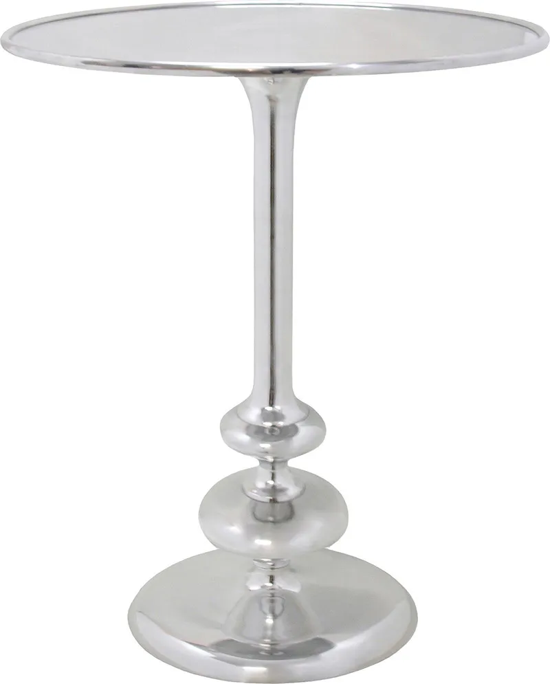 Glamorous in its shape, and timeless with its polished aluminum finish, this accent table is sure to class up any space. Dimensions: 22 x 16 x 16" Artist: Jonathan Wilner
