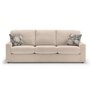 Dovely Sofa (S25): 95 x 40.5 x 38 - Extreme size meets extreme comfort with our Dovely sofa. Stretching a lengthy 95", its modern design makes it equally comfortable and stylish. With three loose-back cushions immensely filled with lush pillow fibers and feature bottom zippers for fiber adjustment. Three reversible seat cushions utilize HR seat foam that's both soft, yet sturdy. Choose from over 700 fabric choices and two pillows in fabric choice. Made in the USA by fine craftsmen. Treat yourself and your family to the Dovely sofa. Your home will thank you.