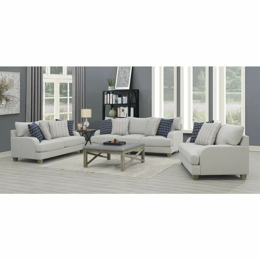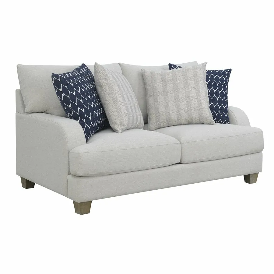 When you want to freshen up your living room, the beautiful Laney collection is at the ready. The classic silhouette is given a subtle update in this transitional design. It features large, comfy cushions in subtle harbor gray color with patterned accent pillows for a pop of color. Whether you're settling in with a good book or entertaining for the evening, you'll love the Laney collection for years to come.