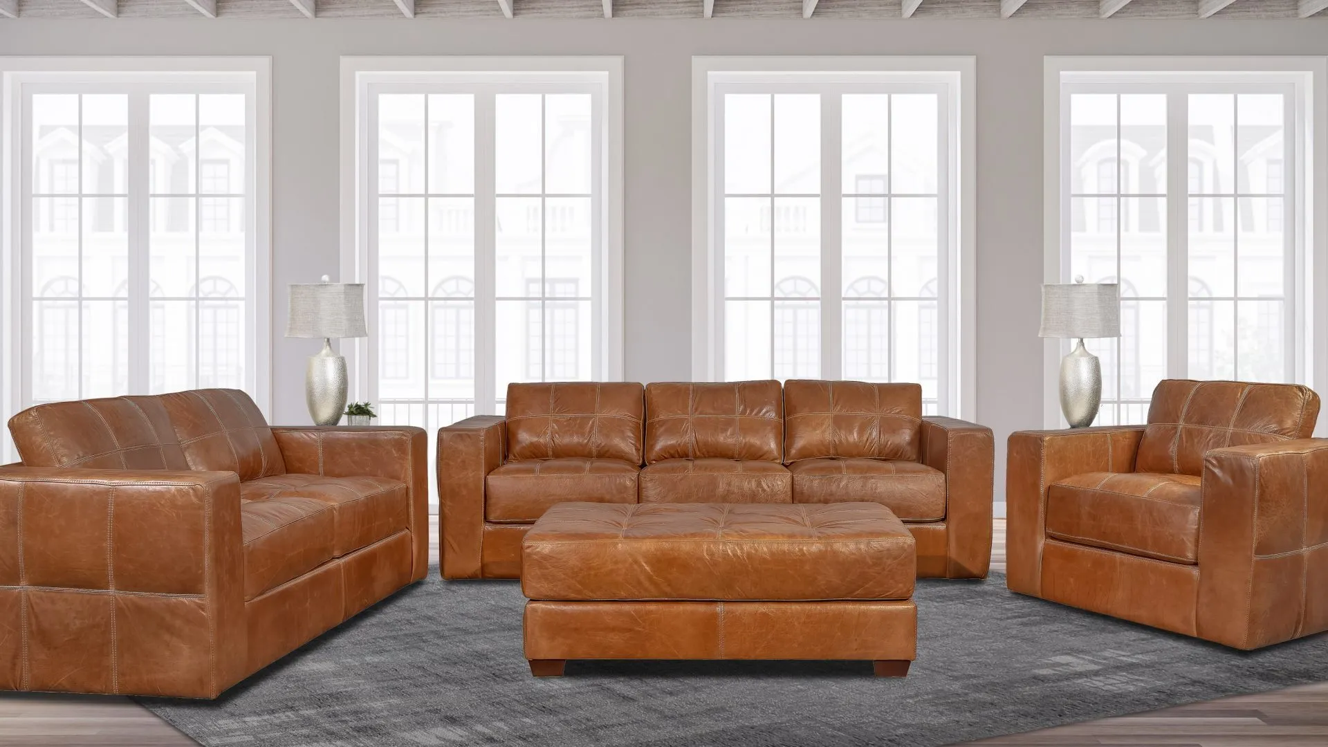 The 5497 frame features a track arm, framed back detail and clean lines in a beautiful Sunset leather.