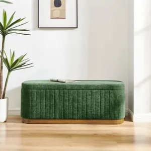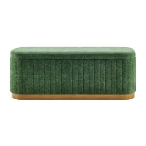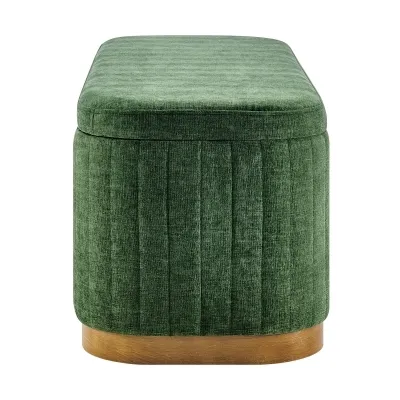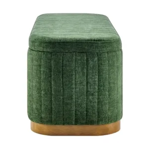 Elevate the living space with Clinton, luxe-vibe storage bench. This green toned fabric bench offers grace while ensuring durability for long-term use. Moreover, there's the hidden storage compartment providing ample space to tuck away essentials, keeping the space clutter-free. Great for an entryway, bedroom, or living room, this storage bench is a chic and practical addition to any modern home. Fully assembled. Available in Seneca Beige and Seneca Green.