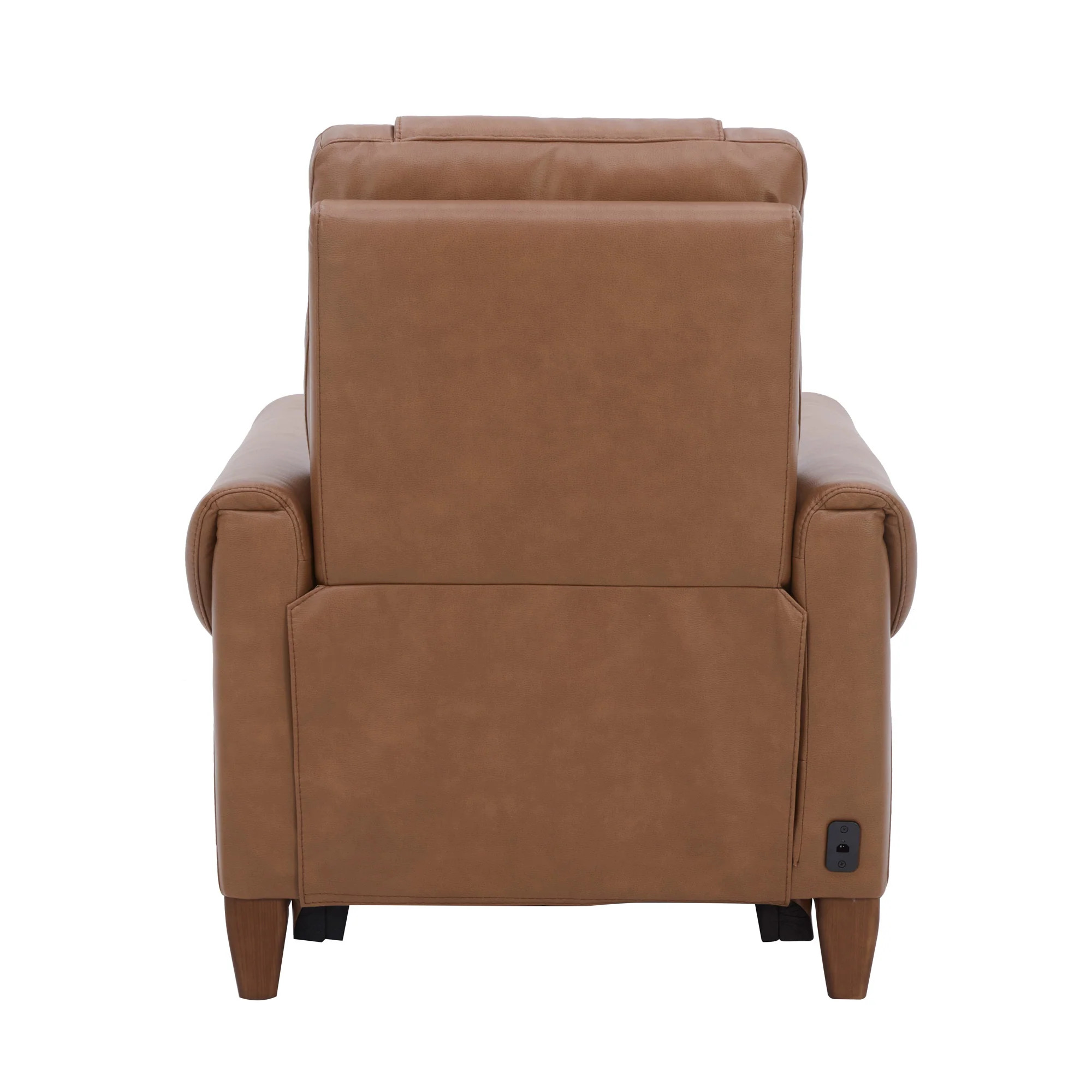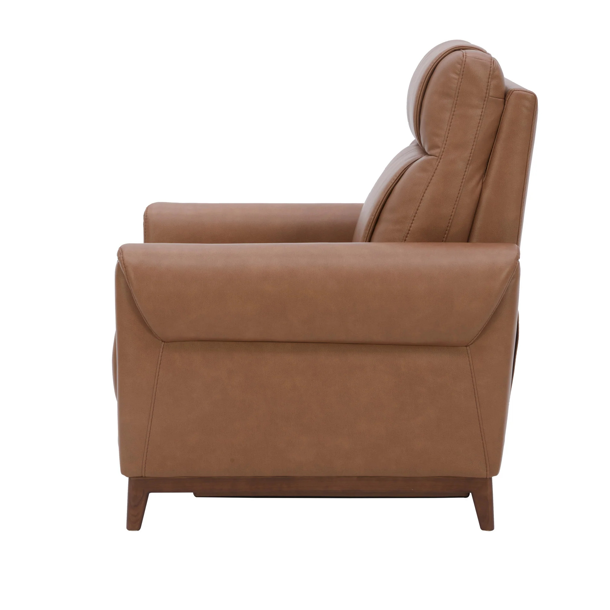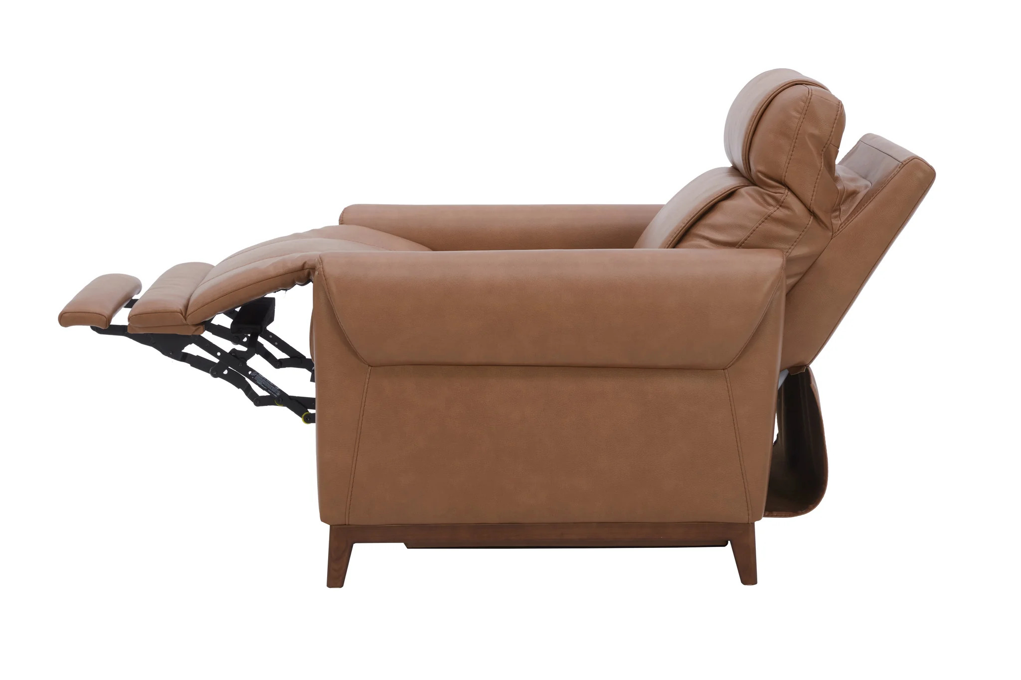 Sleek, smart, and effortlessly refined, the Conrad recliner redefines modern comfort with power recline, an independent power headrest, and hidden controls featuring USB, USB-C, and a Home button for ease. Wrapped in high-performance synthetic leather, it pairs durability with a luxurious feel. Thoughtful design details - like the foldover envelope arm, exposed wood base with tapered legs, hidden footrest extension, and slimline pillow-top overlay - combine architectural style with ergonomic comfort.