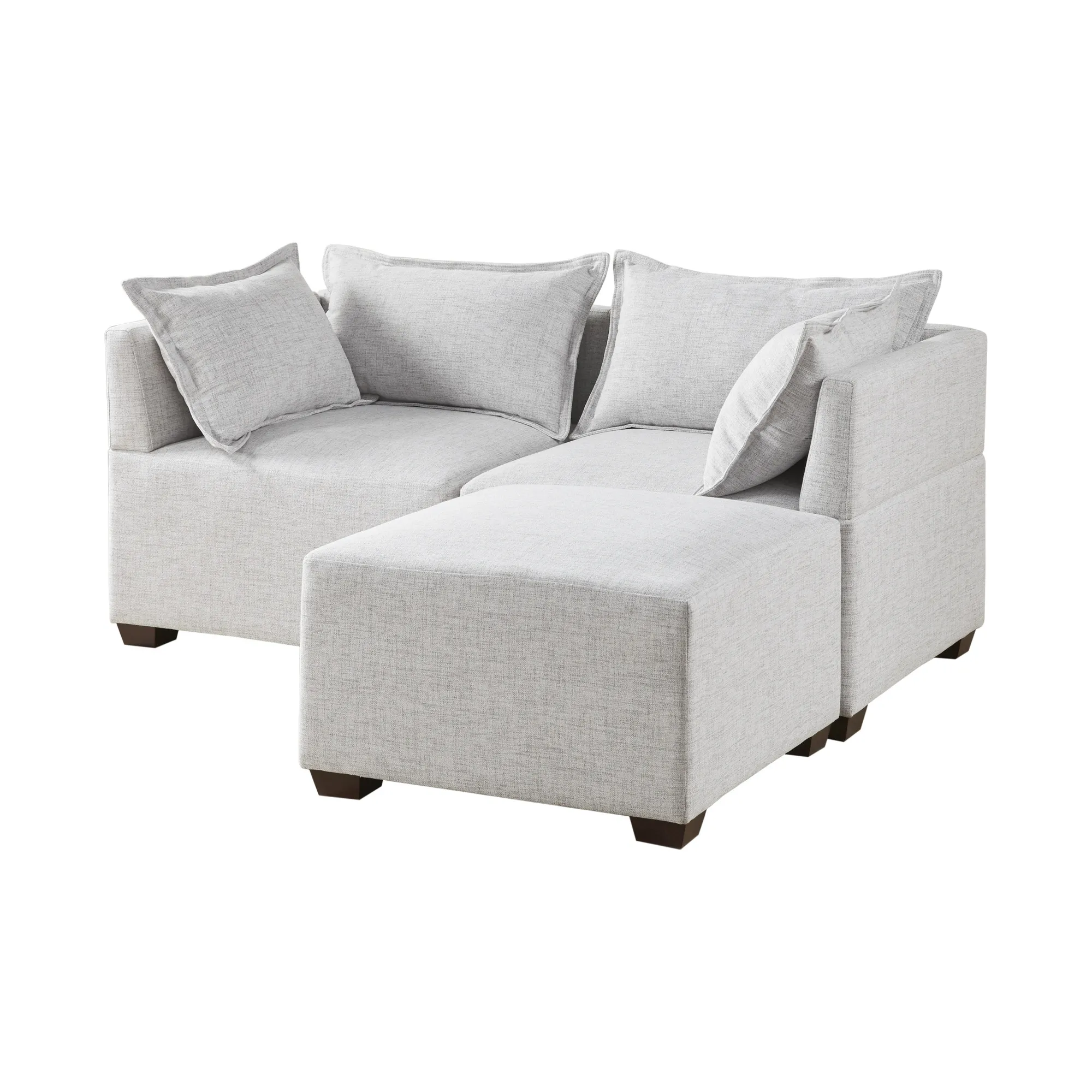 Create a comfortable seating arrangement in your living room with the modern sectional sofa chairs and ottoman. Upholstered in durable and resilient fabric, the modular pieces feature a sleek and clean design for a casual and long lasting look. With unlimited combinations using pieces from the Molly sofa collection, this modular sectional can be easily tailored to fit in any space and elevate your decor.