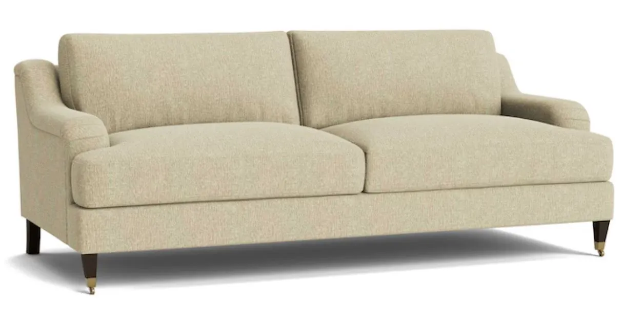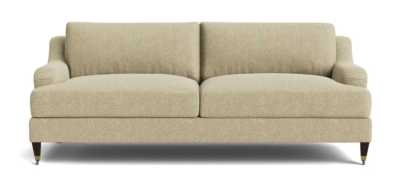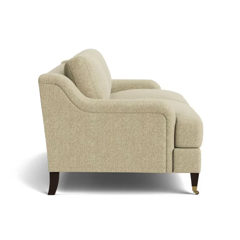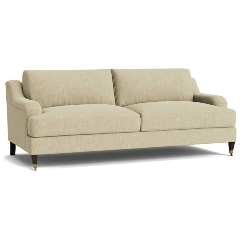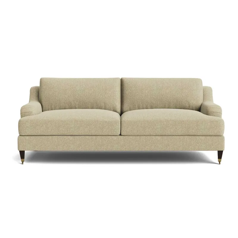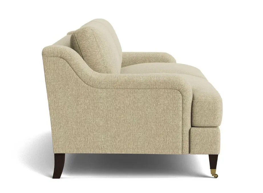Anchor your modern living room and casual lifestyle with the classic comfort of our Stockten English Arm Sofa. The sofa’s blend down cushions provide plush seating for multiple guests, while the pleated Charles of London arms deliver a soft nod to heritage design. The Stockten’s tapered wooden legs are offered in two finishes, with front leg options that include a choice of metal ferrule and casters in brass, bronze, and nickel. Tailoring details for the sofa are as pictured, but all customizing variables for any Stockten piece are available in-store: welting, contrast welting, skirting, and a full array of designer upholstery fabrics. A Stockten ottoman is also available in-store.