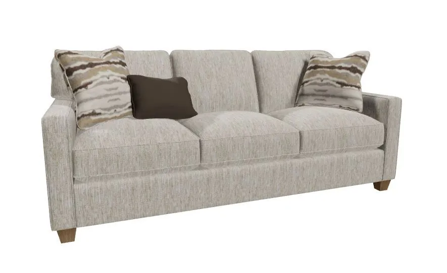 This piece seamlessly blends a minimalist look with the plushest seating we offer to give you the best of both worlds. Featuring welted track arms, simple tapered legs and loose box border backs, this sofa incorporates our Super Soft Blend Down seat cushions and backs as well as Luxdown toss pillows for billowy soft feel. Also available with 2 seats or Bench Seat in 80" and 86" lengths. Also available are the matching loveseat, chair, ottoman and 77" 2-seat queen sleeper. Also available with a removable slipcover as style 9374.