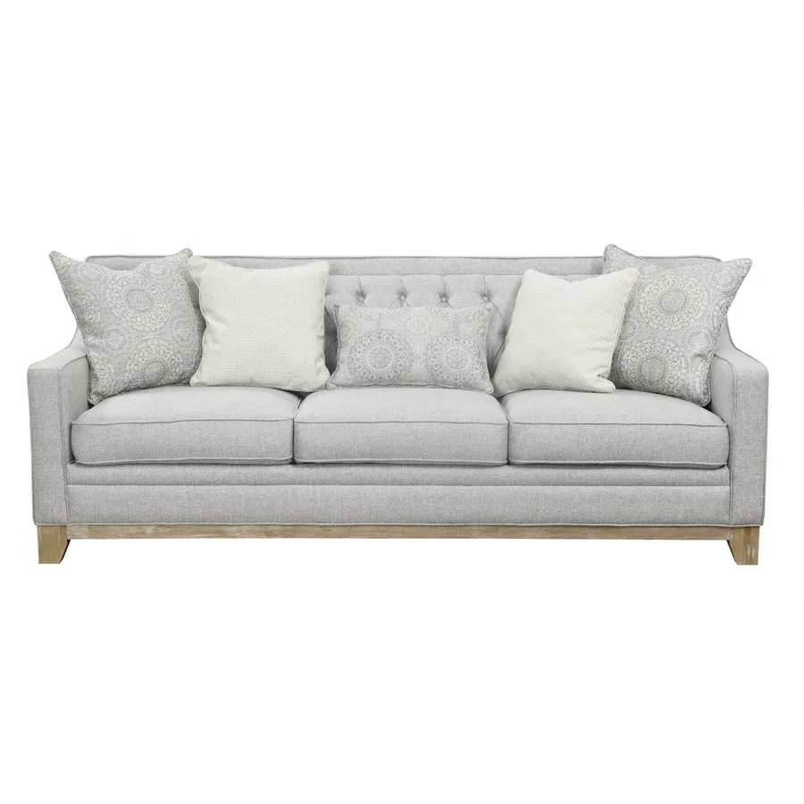 One of the most beautiful combinations of tailoring, fabrics, textures, and materials we've seen. The neutral, sophisticated Jaizel collection layers classic button tufting, textured and patterned fabrics, weathered woods, and clean lines to bring you a comfortable, enchanting look that pairs just as effortlessly in a formal living room as it does in a relaxed family room or casual living space.