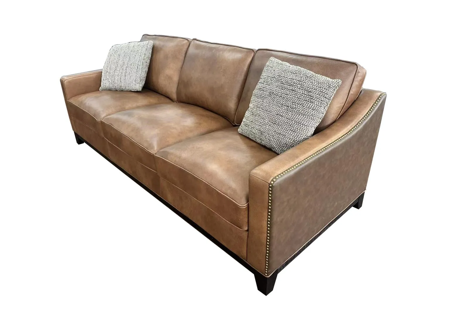 Today's Traditions Sofa Positano Clay/Roma Brandy Wood Base Sofa W/Nail Head Trim W/2-18" Down Blend Pillows