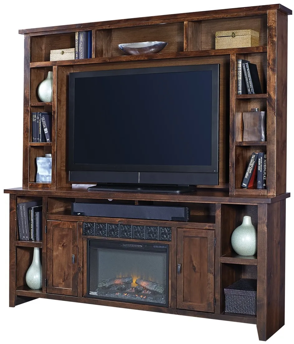 84" Fireplace Console and Hutch The Alder Grove collection comes in Tobacco and Fruitwood finishes; With alder solids and alder veneers