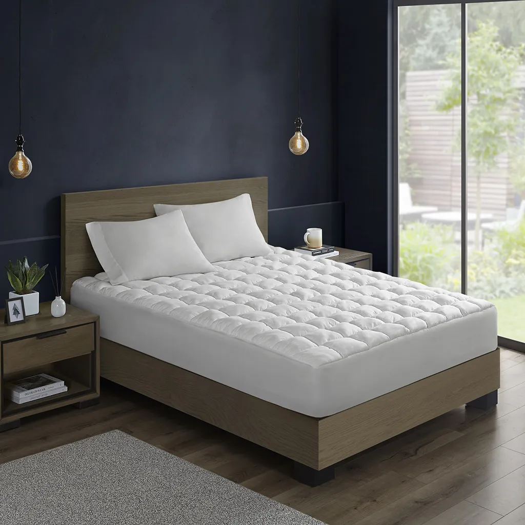 Transform your bedroom into a cozy dream with our Dream Puff mattress pad. The 3D puff stitching creates a beautiful, airy cloud-like look, and is overfilled for an extra-lofty look and feel. The crinkled quilted design ensures an even distribution of the fill for an optimal sleeping experience. Plus, it features deep pockets fitting up to 18" mattresses for guaranteed coverage and support. This microfiber mattress pad is also machine washable for easy care and OEKO-TEX certified, meaning it does not contain any harmful substances or chemicals to ensure quality comfort and wellness. Experience ultimate comfort with our Dream Puff mattress pad. Matching comforter mini set available for purchase separately.